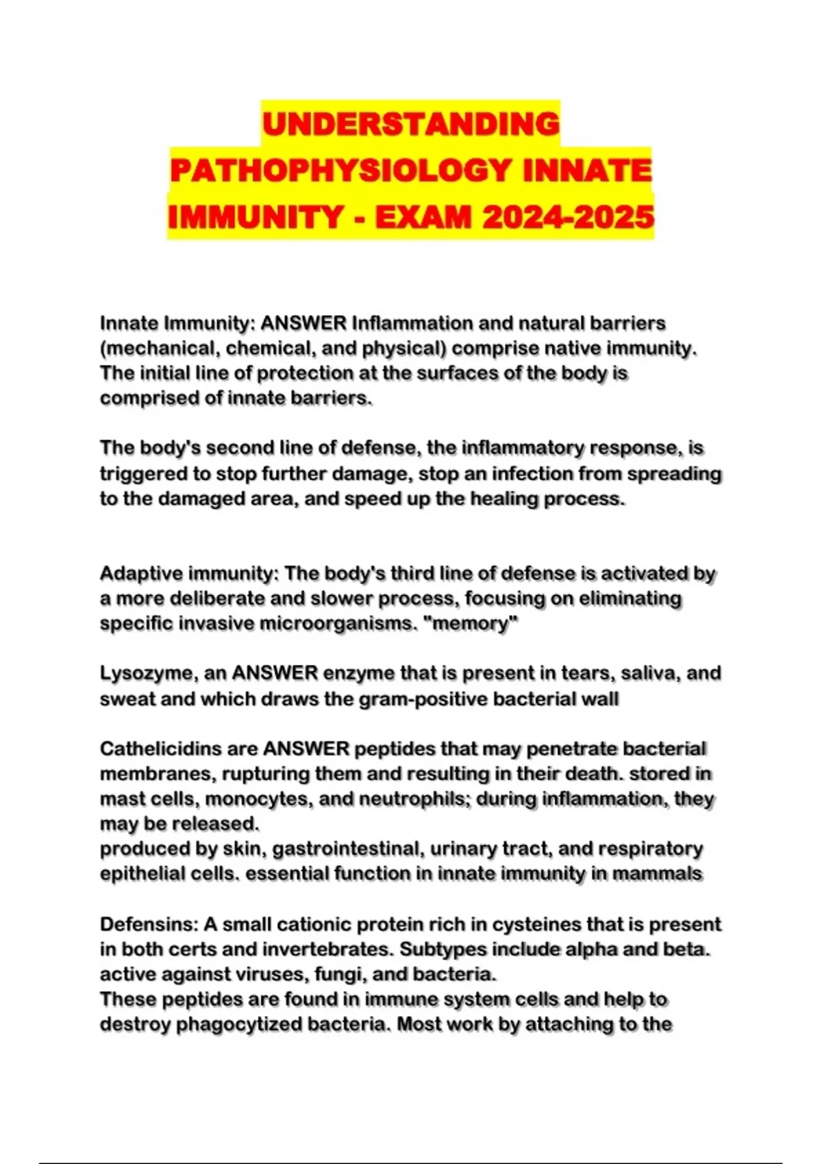UNDERSTANDING PATHOPHYSIOLOGY INNATE IMMUNITY - EXAM ...