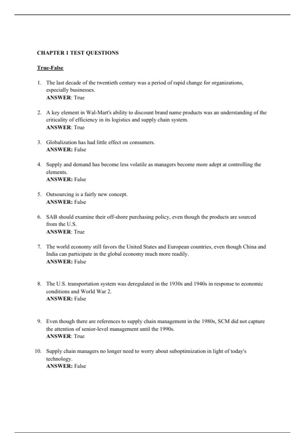 10. Supply chain managers no longer need to worry about suboptimization in light of today's