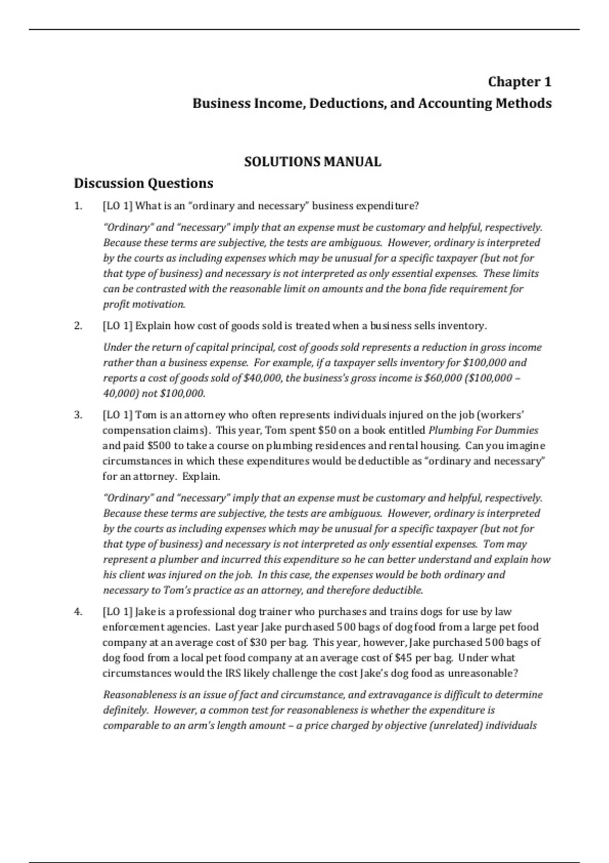 1. [LO 1] What is an “ordinary and necessary” business expenditure?