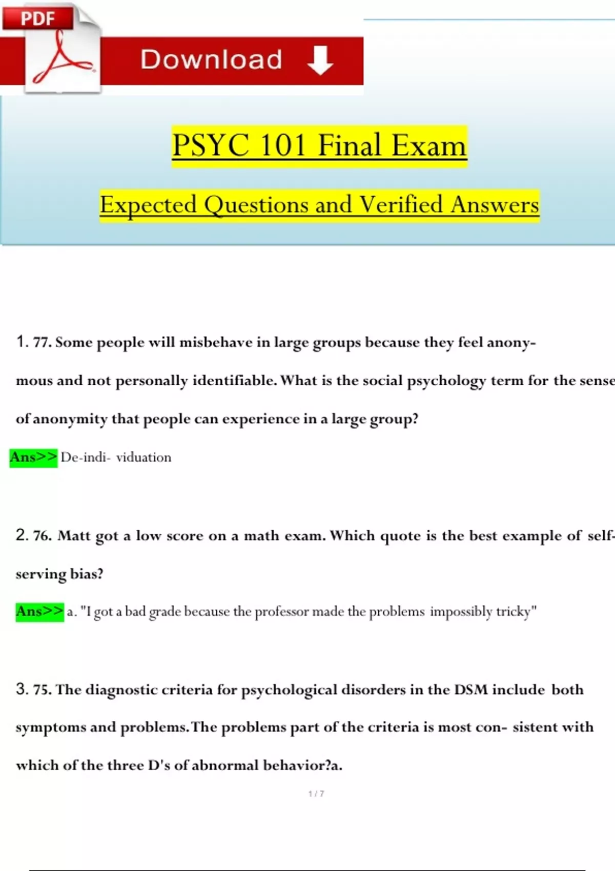 PSYC 101 Final Exam Questions and Revised Correct Answers. with 100% Guarantee Pass