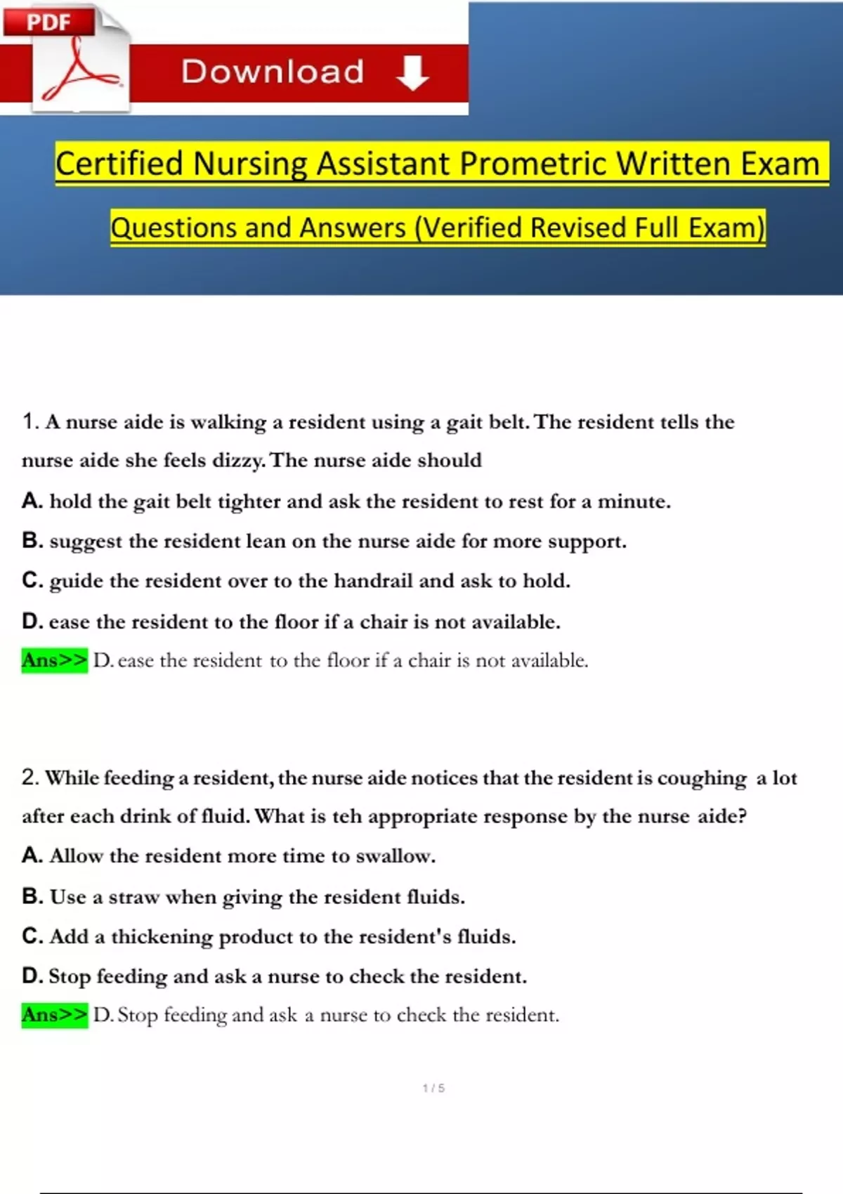 Certified Nursing Assistant Prometric Written Exam (2024 / 2025) Actual Questions and Verified Answers / A+ Grade