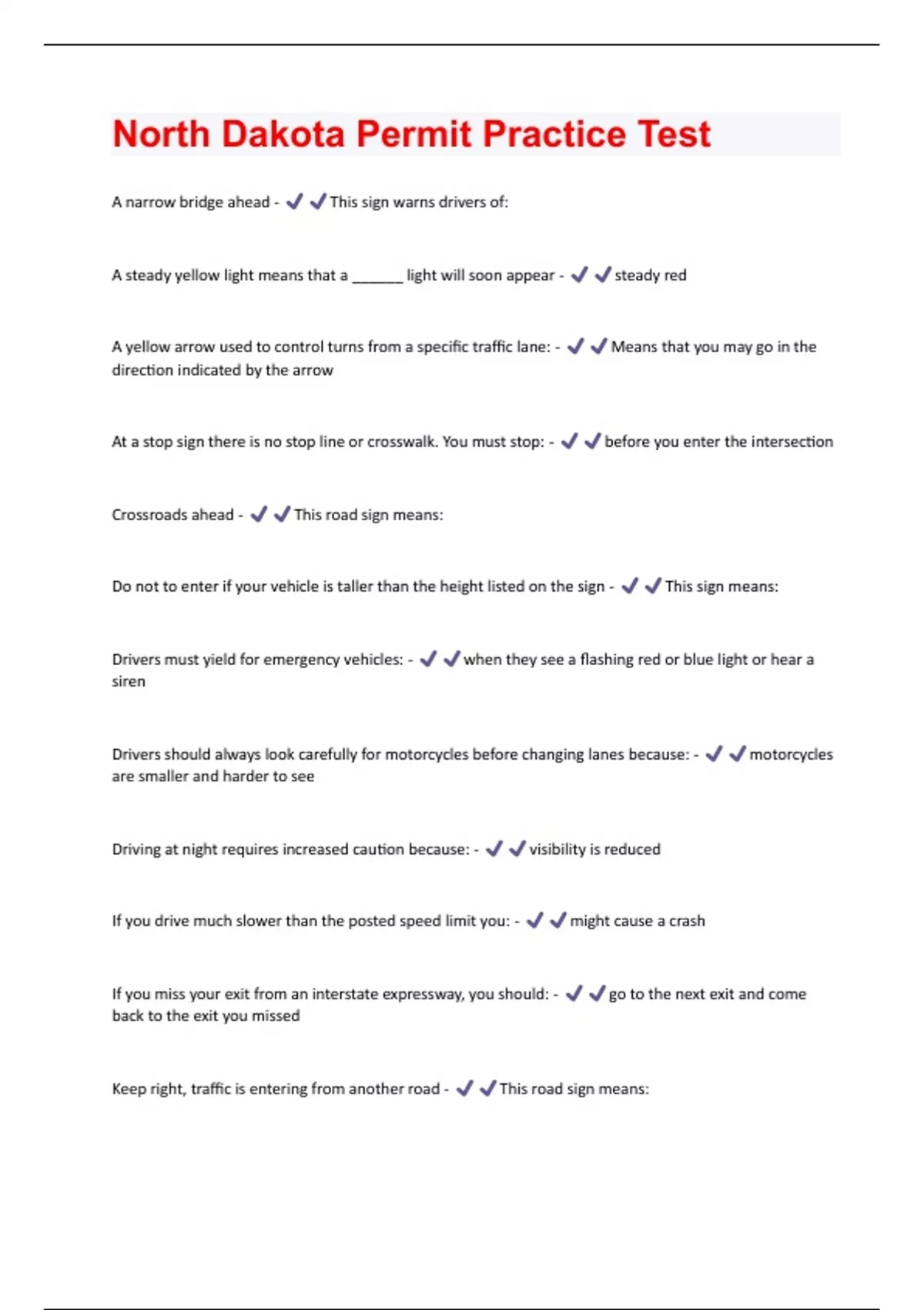 North Dakota Permit Practice Test Questions With 100% Correct Answers.
