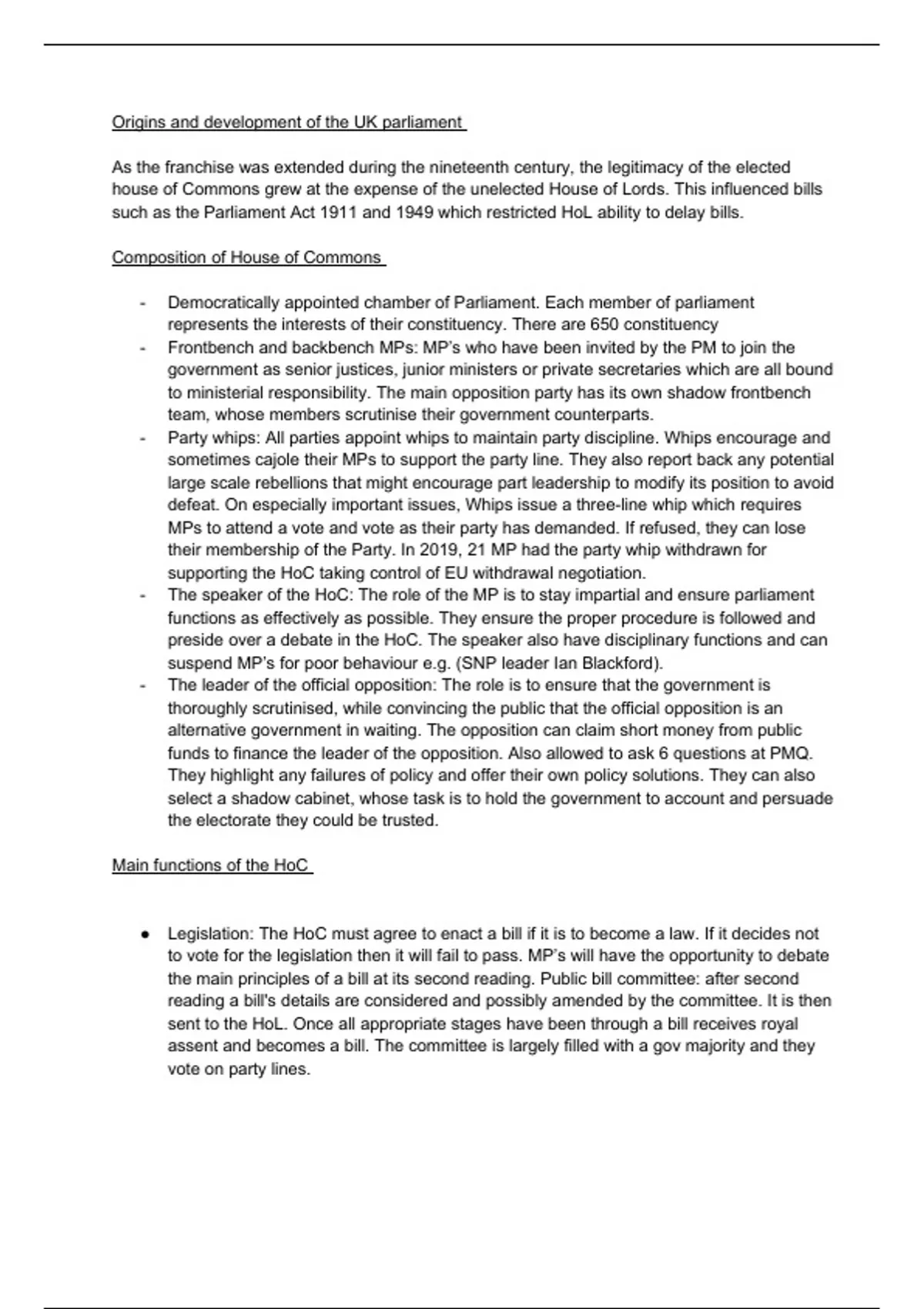 Helpful notes and summary of UK parliament. Very good for exam season