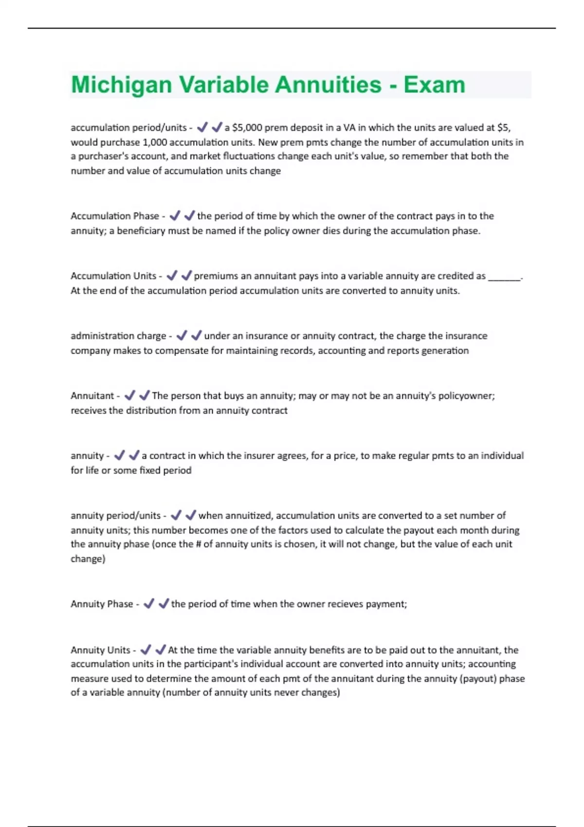 Michigan Variable Annuities - Exam Questions and Answers with complete solution