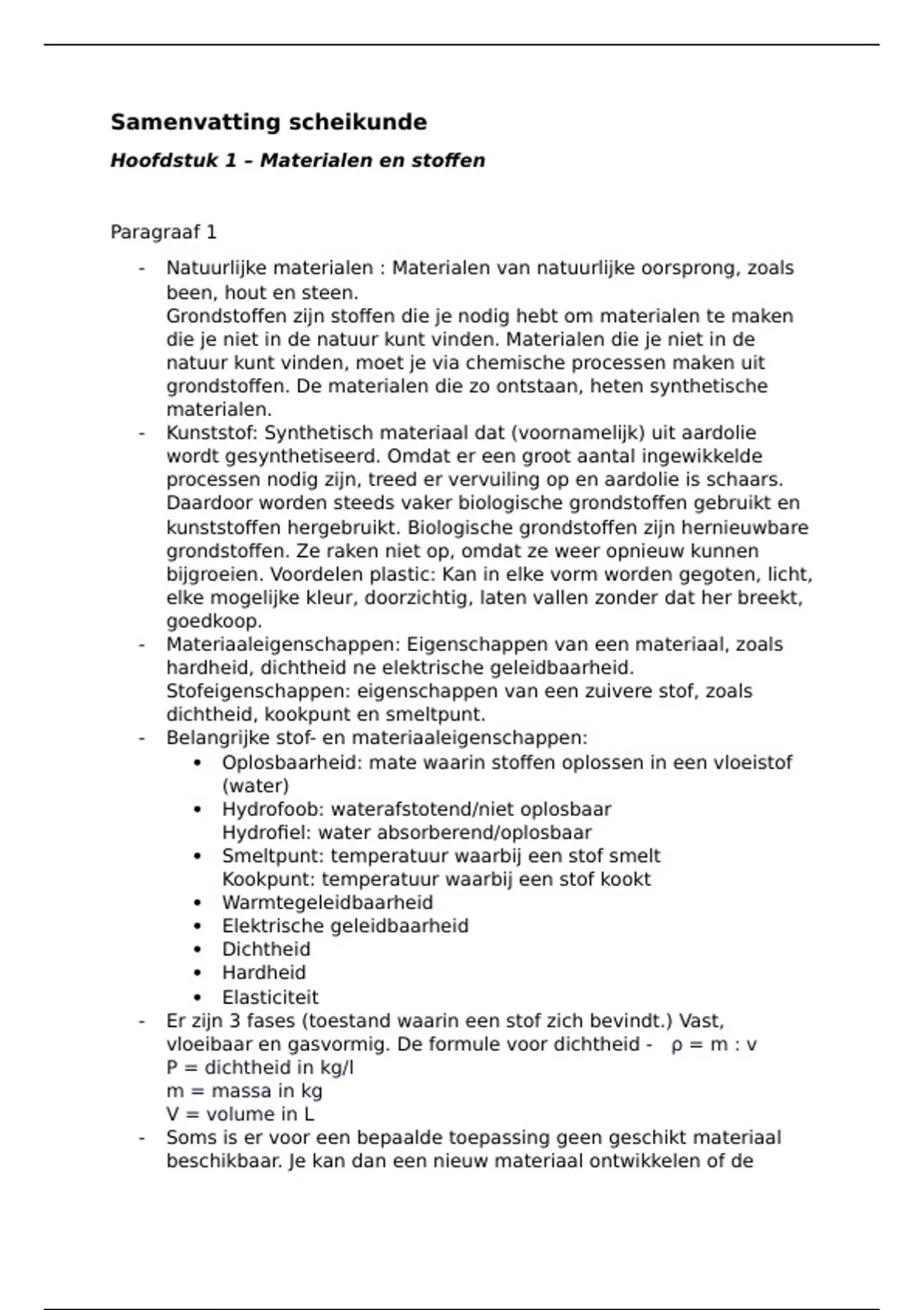 Samenvatting- 3vwo -H1 -Nova Scheikunde -Materialen en Stoffen