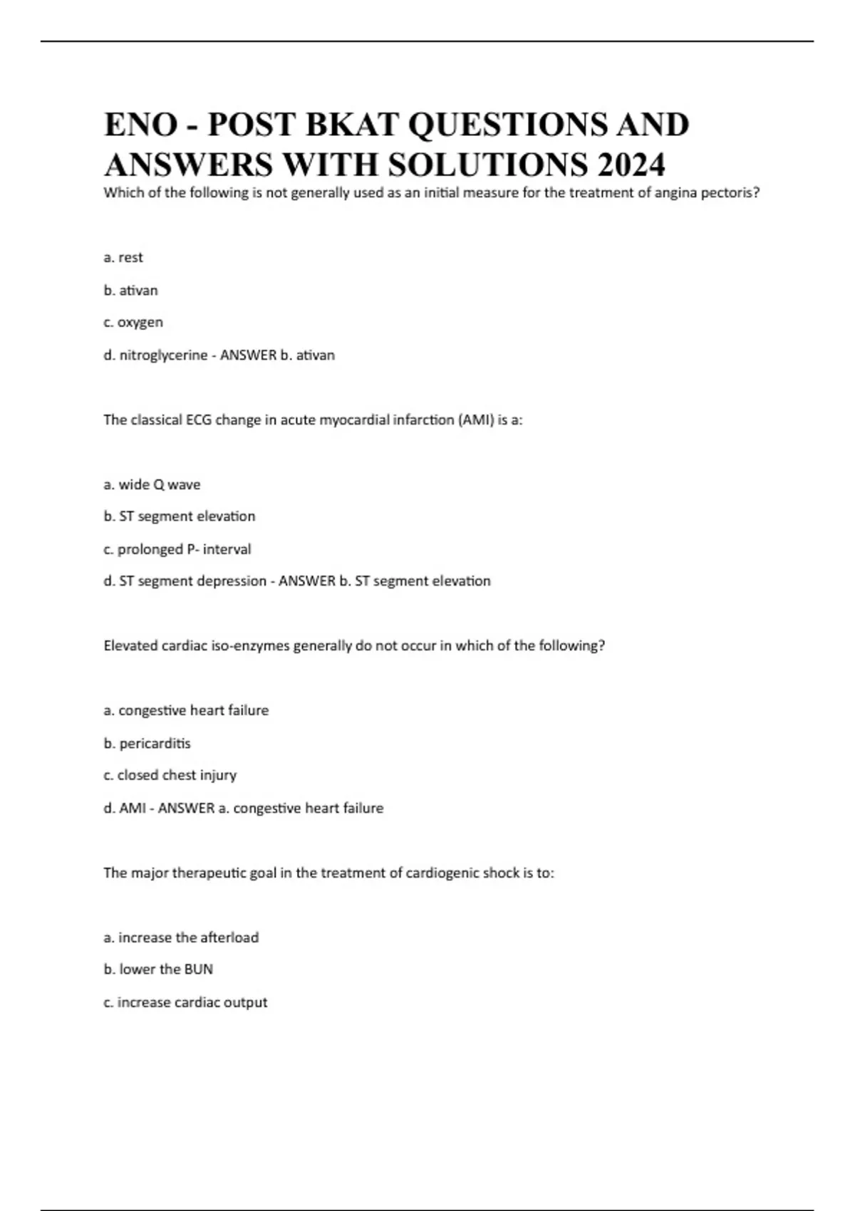 ENO - POST BKAT QUESTIONS AND ANSWERS WITH SOLUTIONS 2024