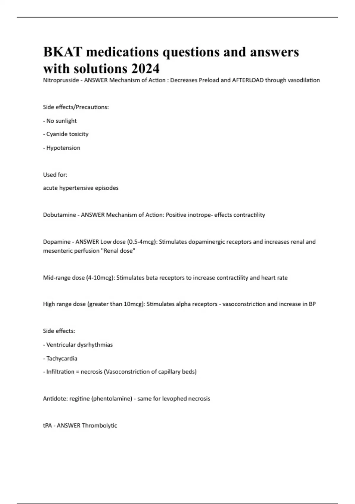 BKAT medications questions and answers with solutions 2024