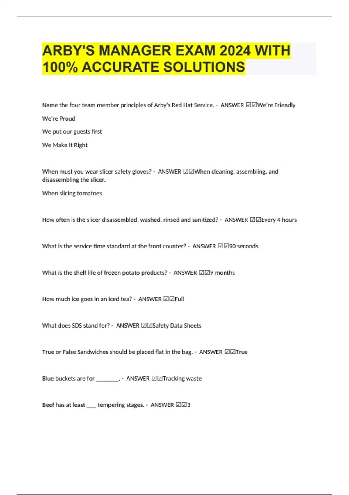 ARBY'S MANAGER EXAM 2024 WITH 100% ACCURATE SOLUTIONS