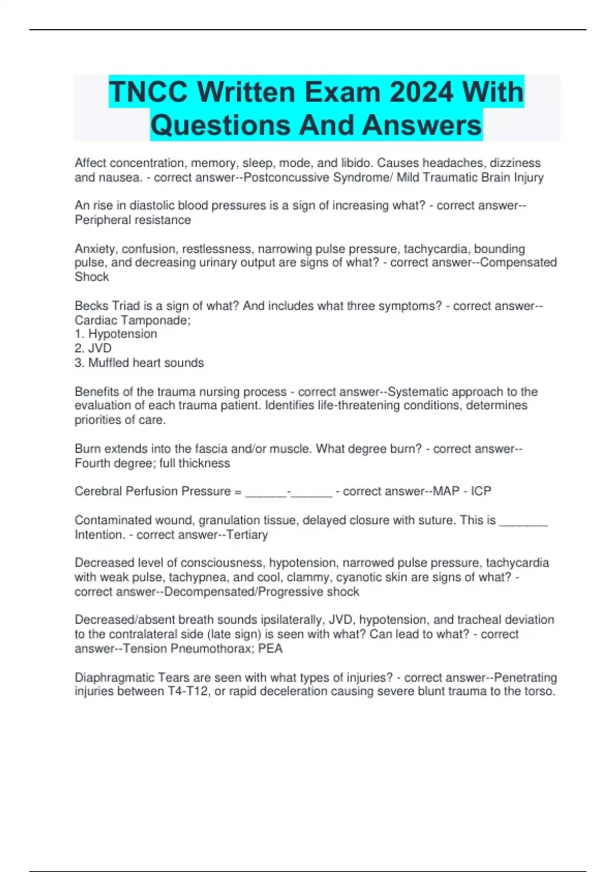 TNCC Written Exam 2024 With Questions And Answers