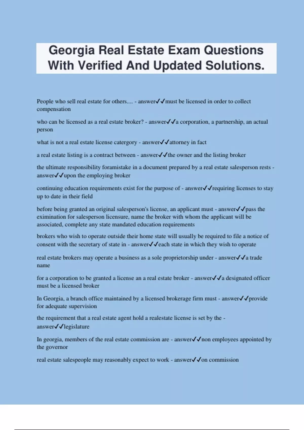 Georgia Real Estate Exam Questions With Verified And Updated Solutions.