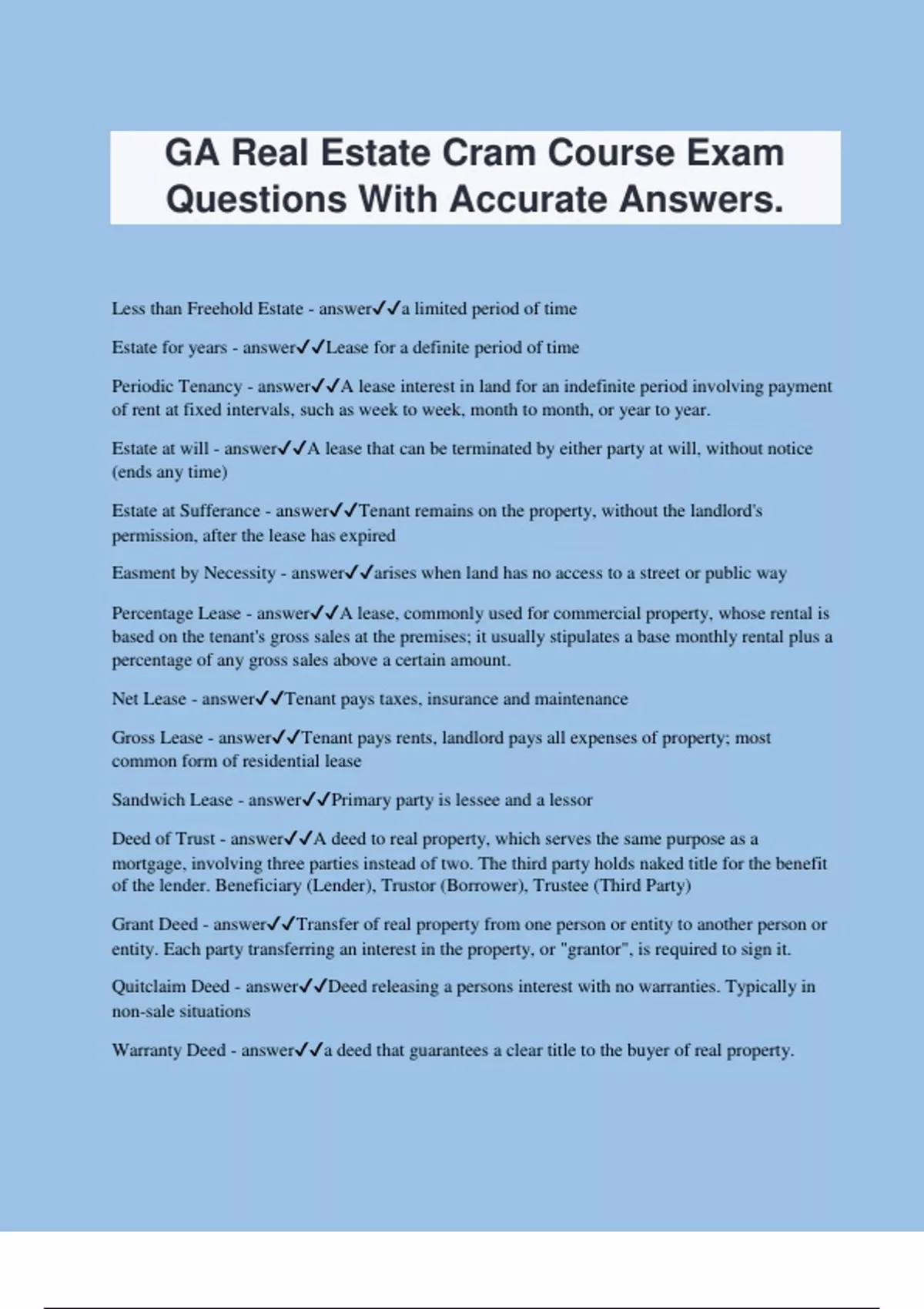 GA Real Estate Cram Course Exam Questions With Accurate Answers.