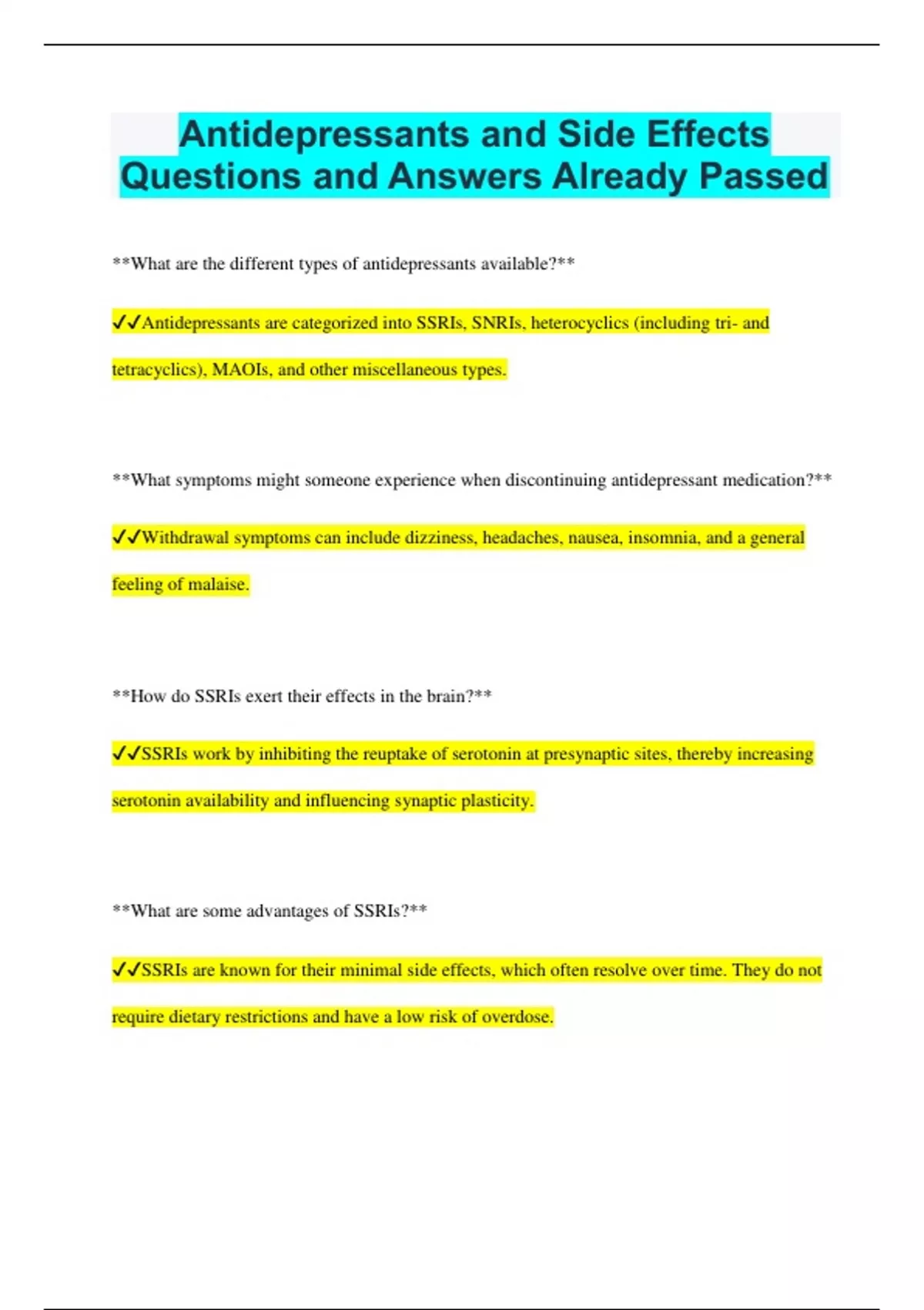 Antidepressants and Side Effects Questions and Answers Already Passed