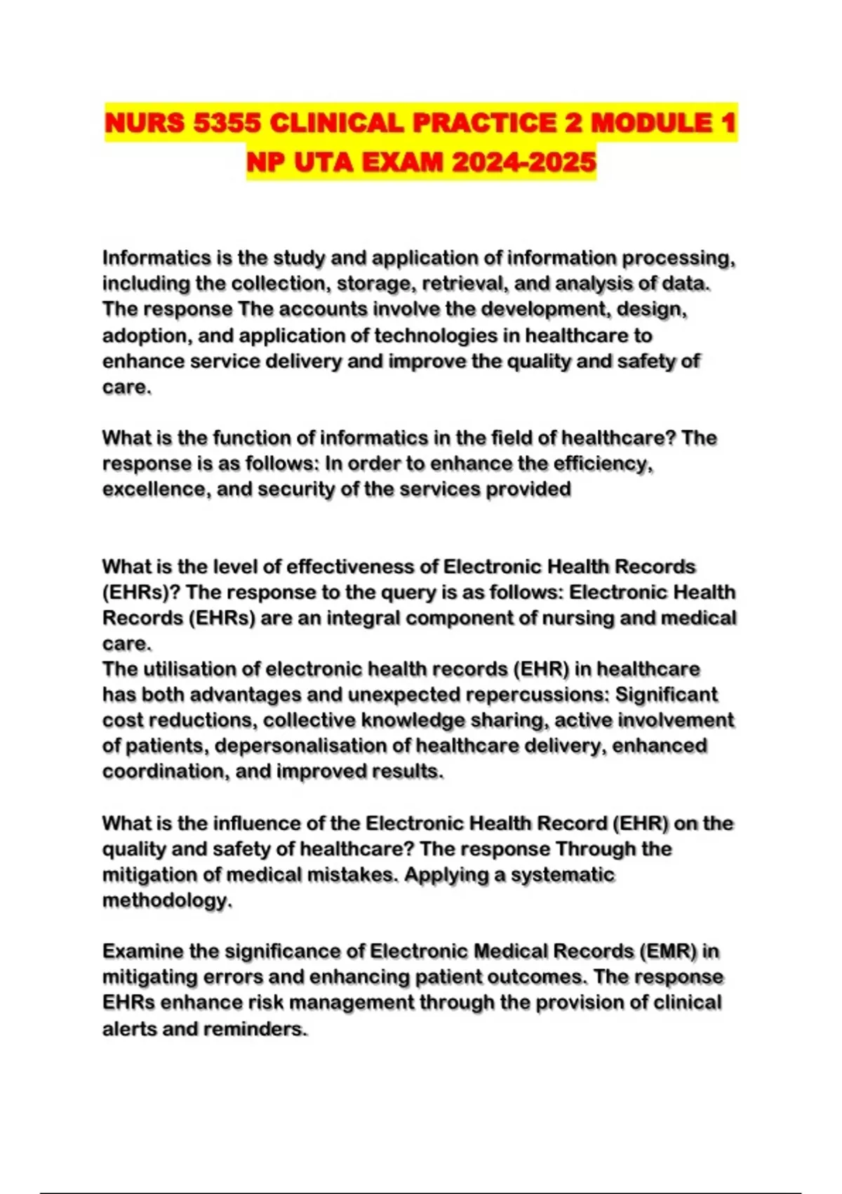 NURS 5355 CLINICAL PRACTICE 2 MODULE 1 NP UTA EXAM ...