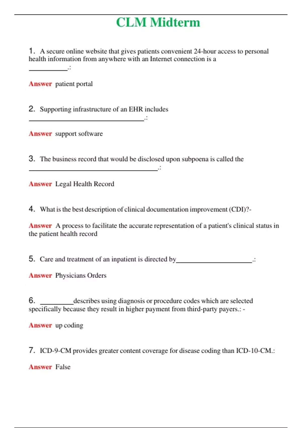 CLM Midterm (Latest 2024) Questions With Complete Grade A+ Answers