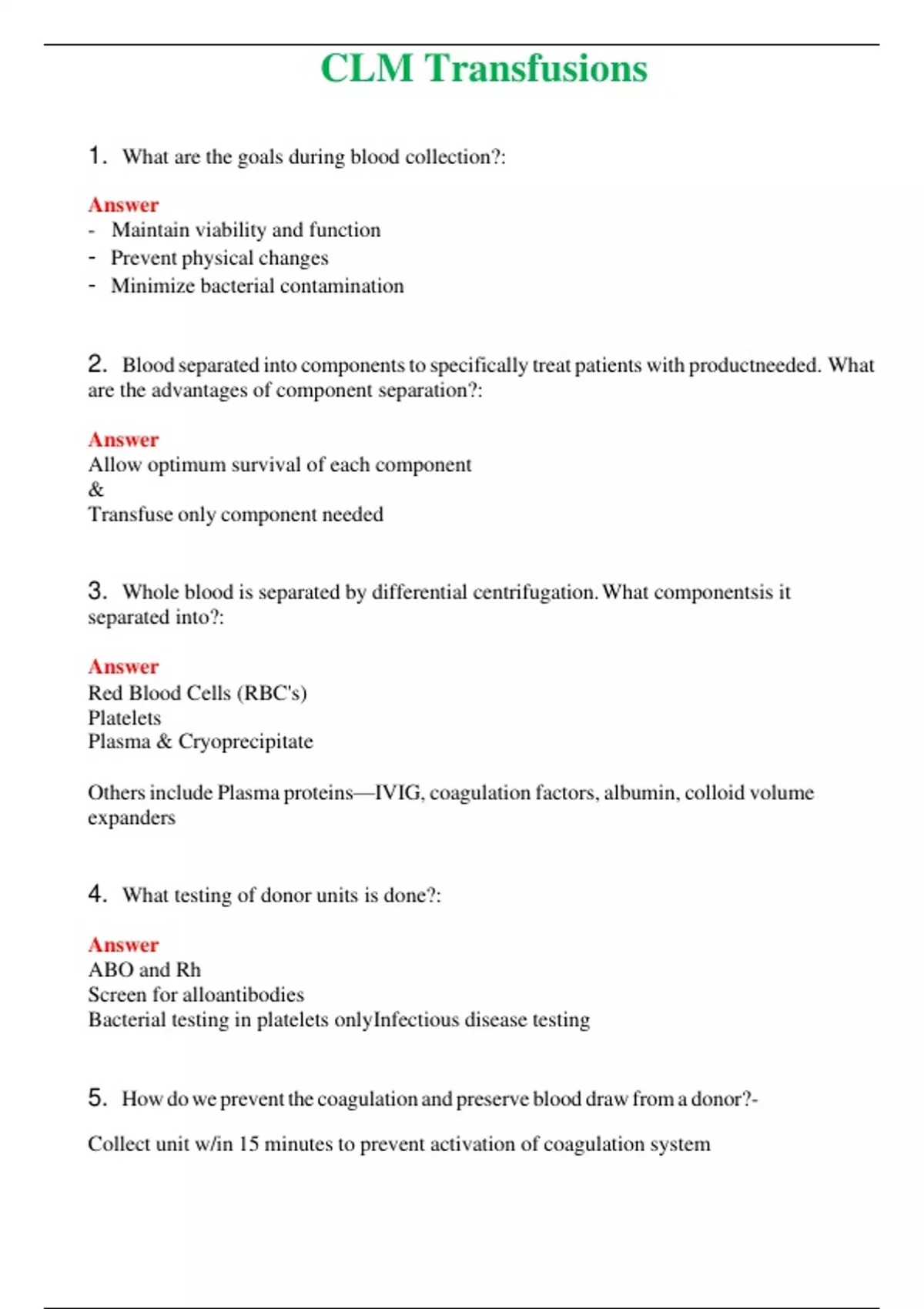 CLM Transfusions (Latest 2024) Questions With Complete Grade A+ Answers