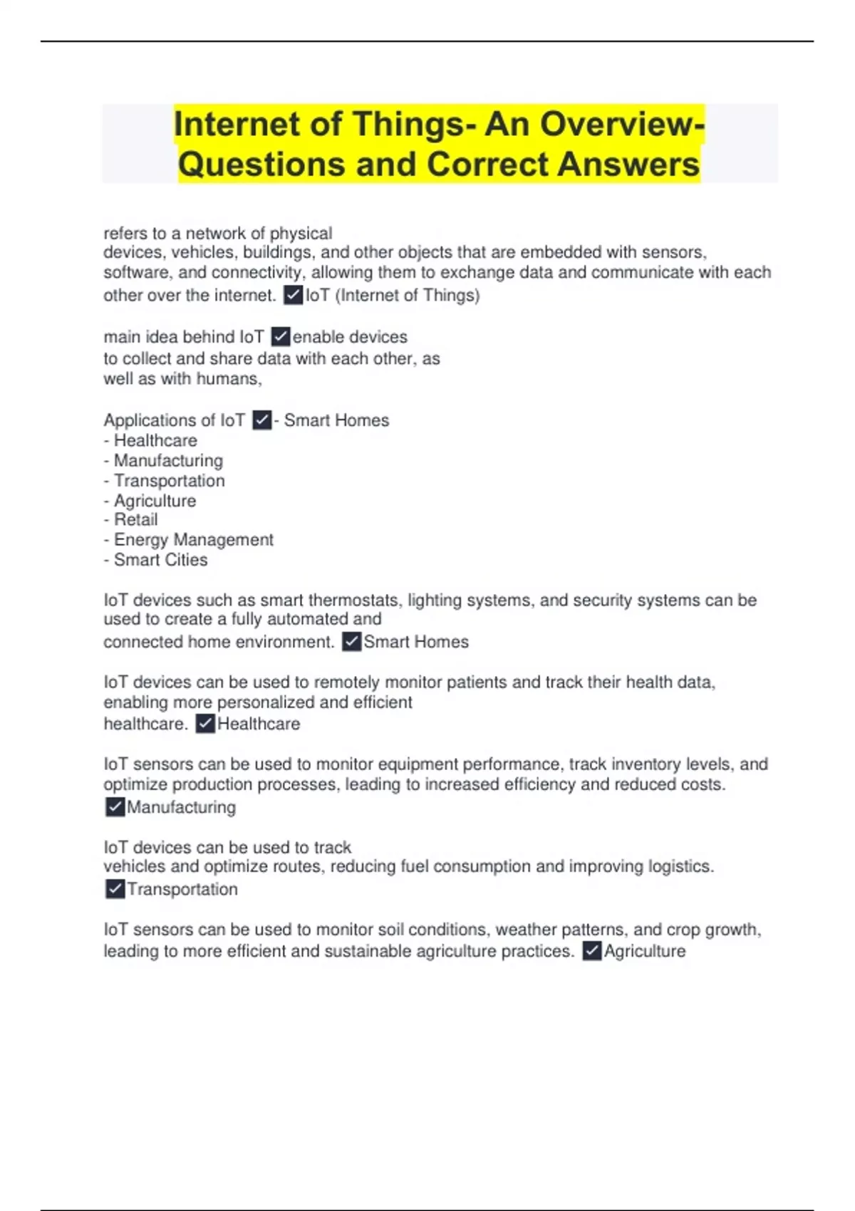 Internet of Things- An Overview- Questions and Correct Answers