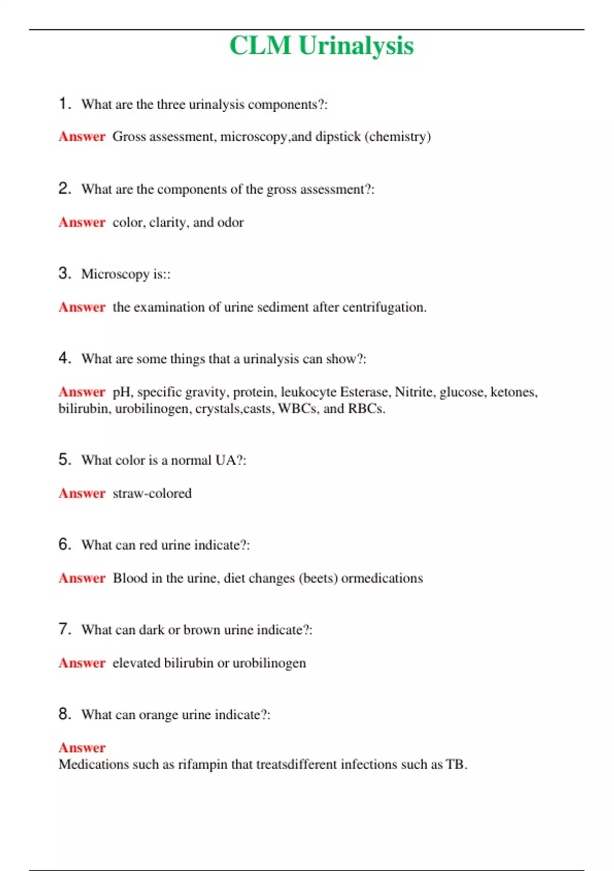 CLM Urinalysis (Latest 2024) Questions With Complete Grade A+ Answers