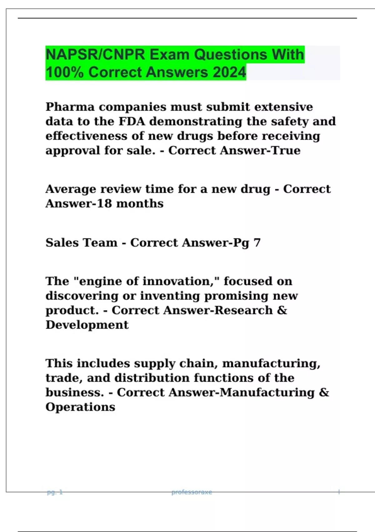 NAPSR/CNPR Exam Questions With 100% Correct Answers 2024
