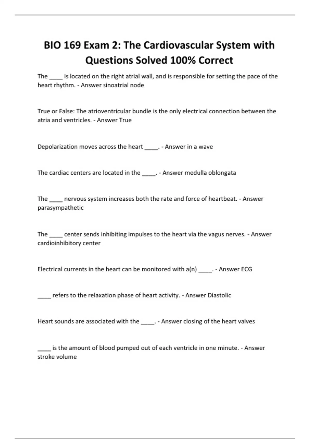 BIO 169 Exam 2: The Cardiovascular System with Questions Solved 100% Correct