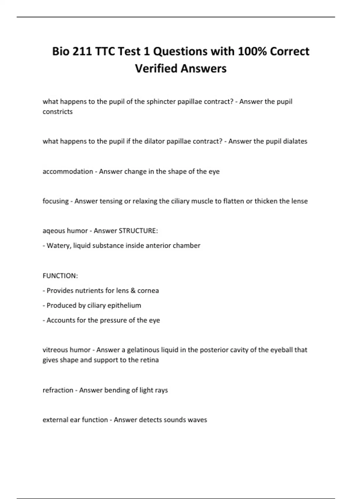 Bio 211 TTC Test 1 Questions with 100% Correct Verified Answer