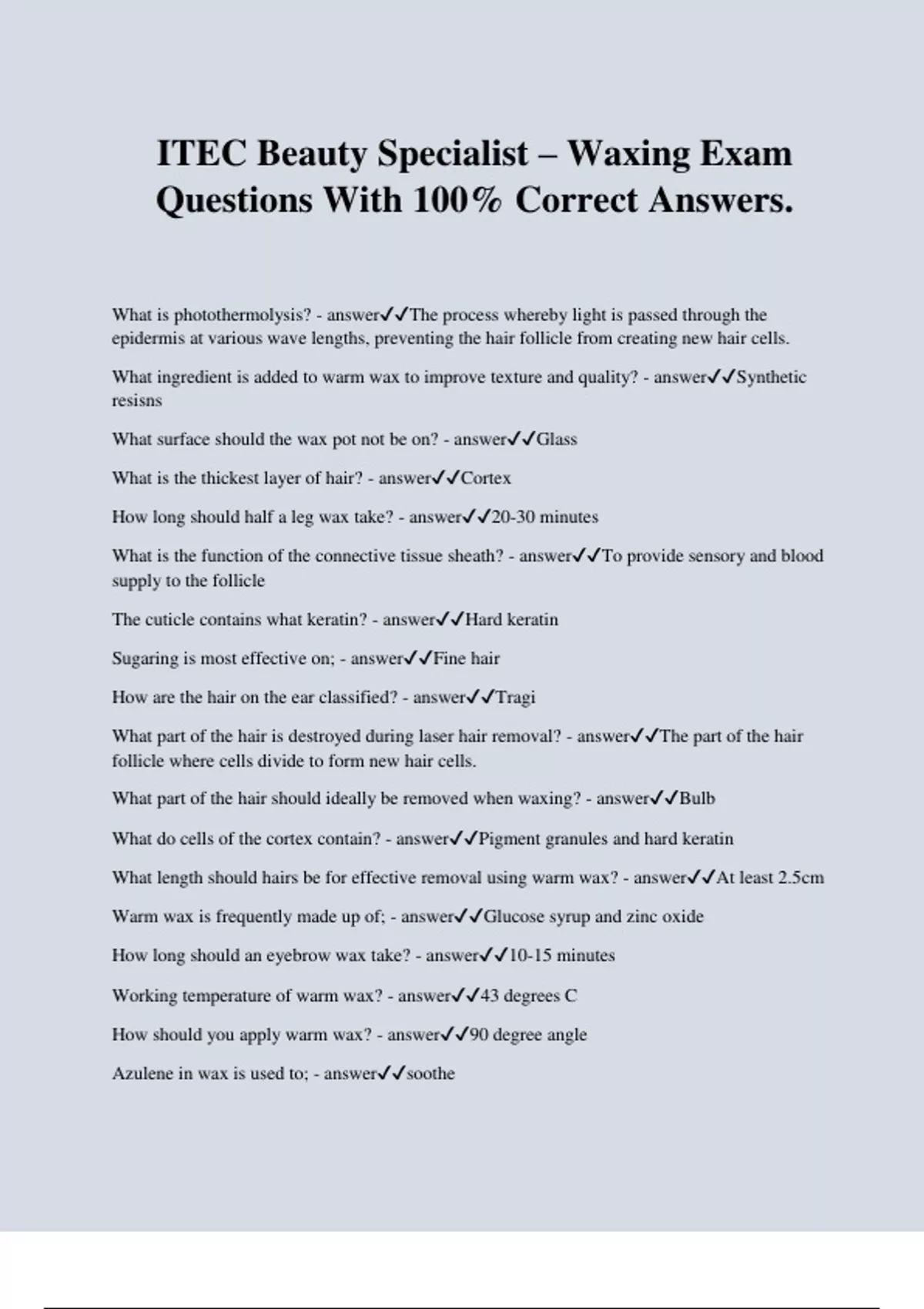 ITEC Beauty Specialist – Waxing Exam Questions With 100% Correct Answers.