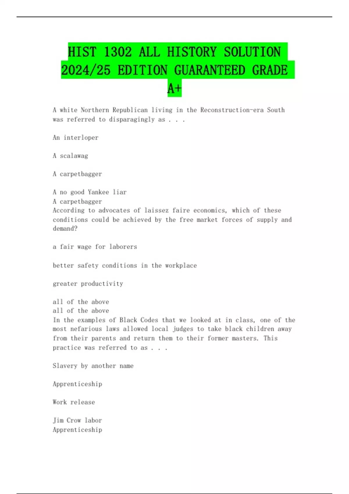HIST 1302 ALL HISTORY SOLUTION 2024/25 EDITION GUARANTEED GRADE A+