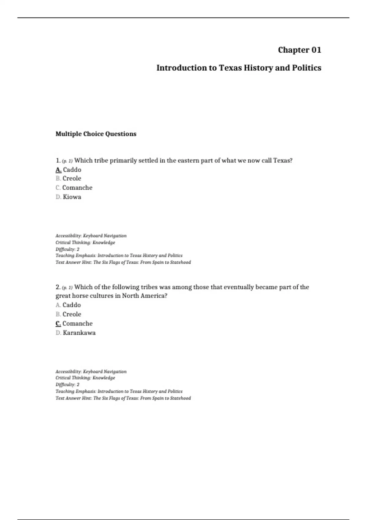 2. (p. 1) Which of the following tribes was among those that eventually became part of the