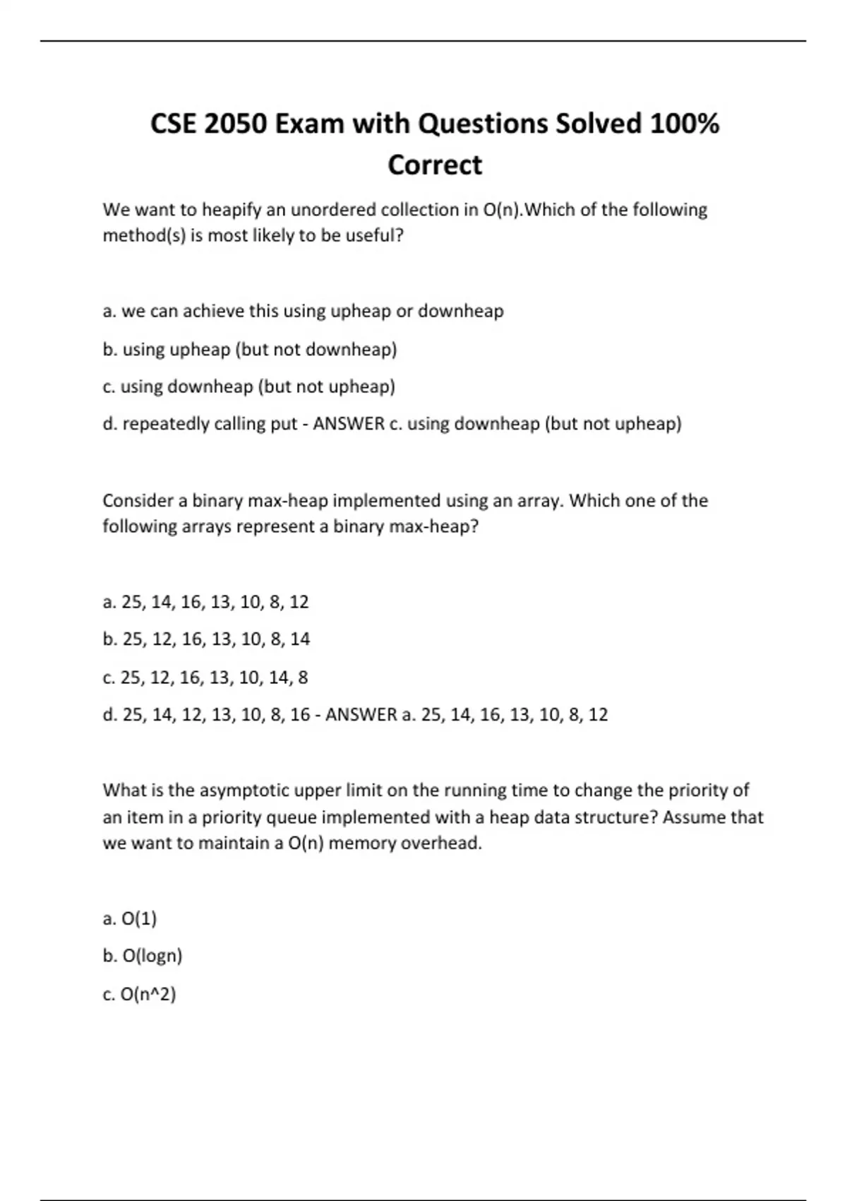 CSE 2050 Exam with Questions Solved 100% Correct