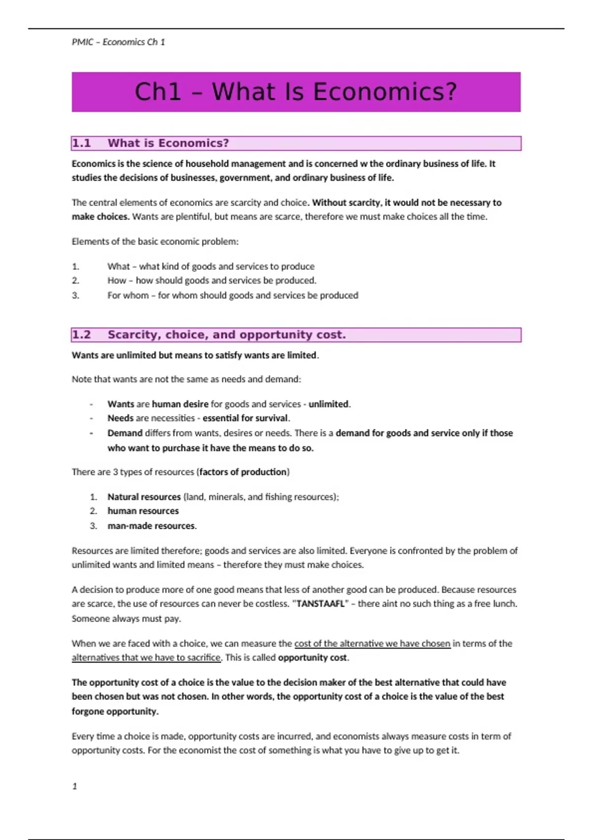 , PMIC – Economics Ch 1