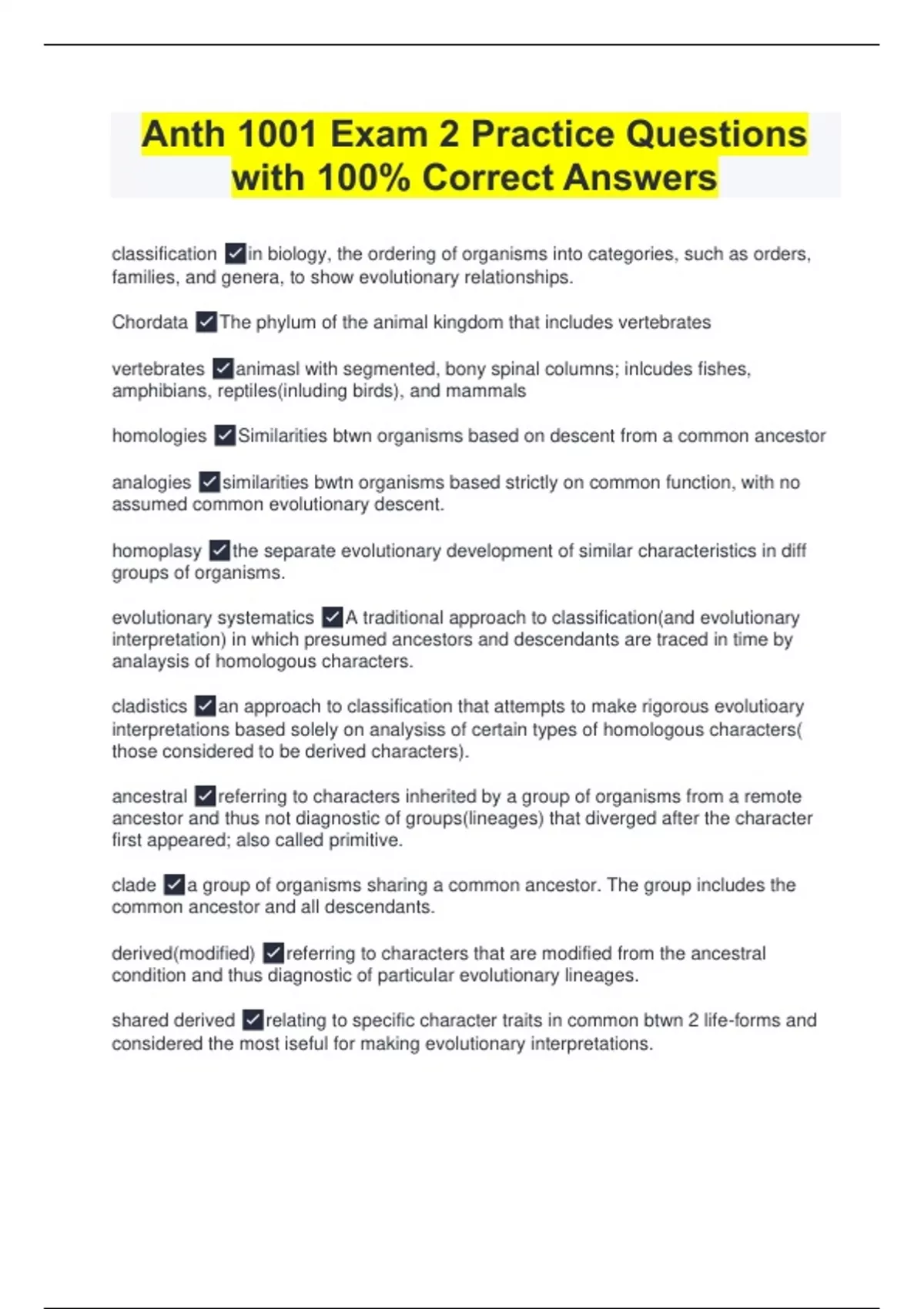 Anth 1001 Exam 2 Practice Questions with 100% Correct Answers