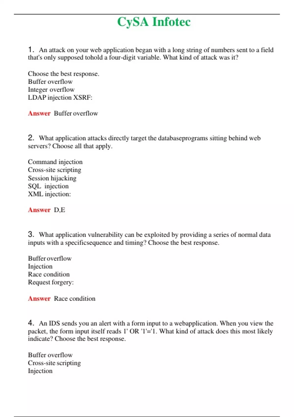 2024 CySA Infotec | Actual Questions and Verified Answers ( Included ) 100% Correct