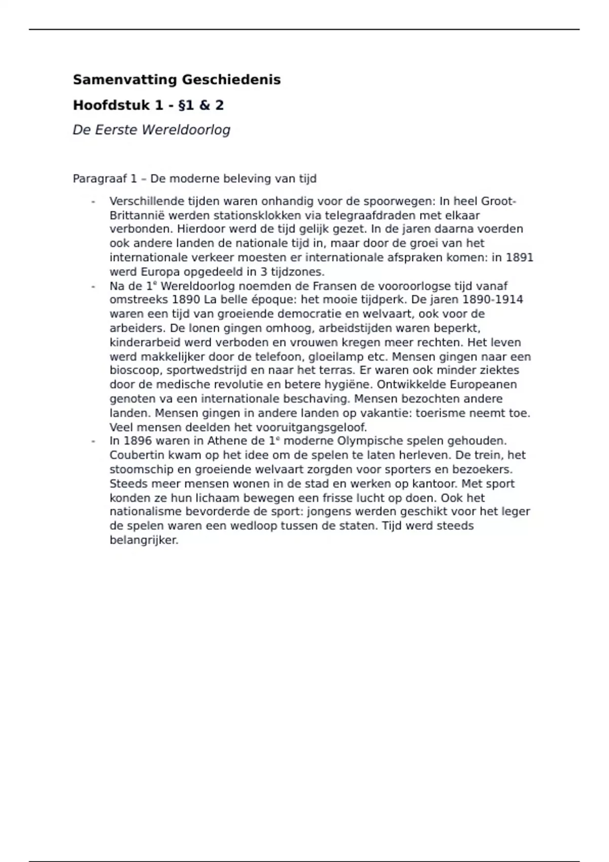 Samenvatting Geschiedenis Werkplaats 3vwo Hoofdstuk 1 paragraaf 1 en 2 De Eerste Wereldoorlog De moderne beleving van tijd en De Grote Oorlog