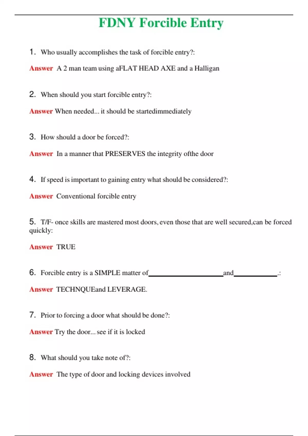 - FDNY Forcible Entry