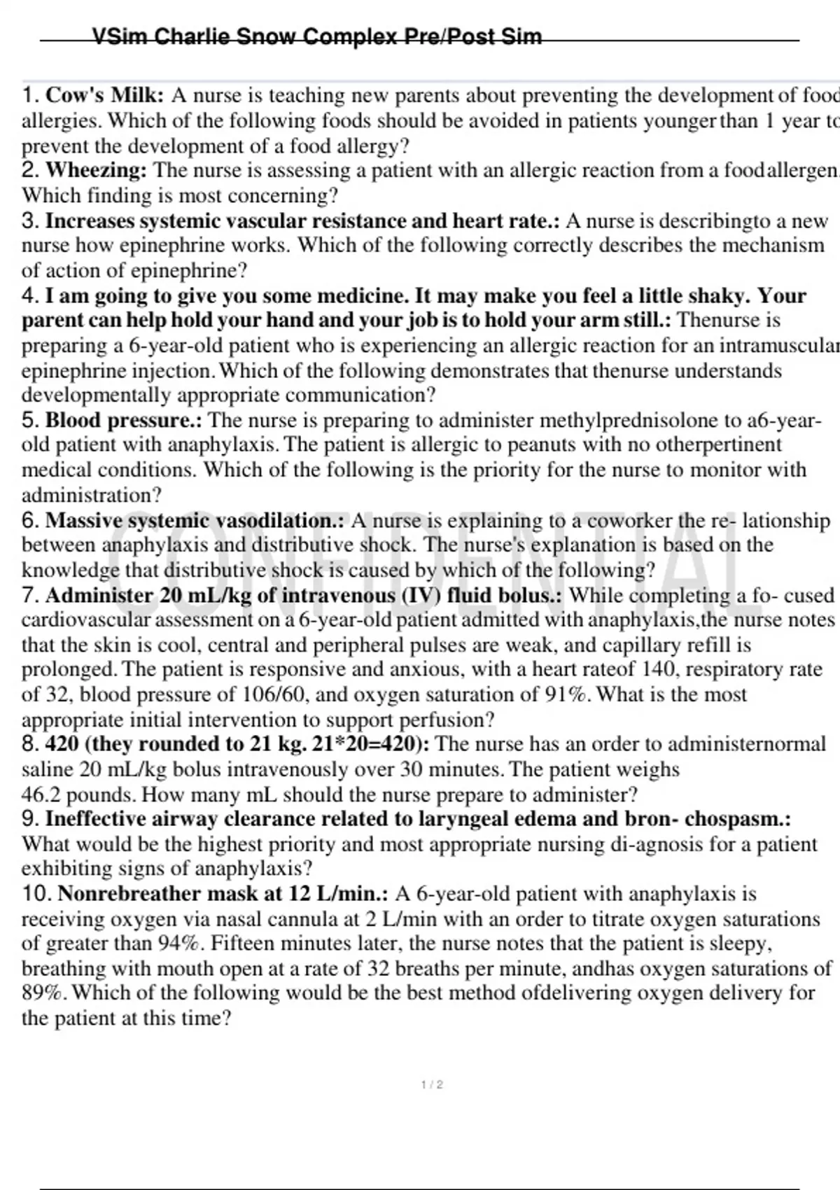 old patient with anaphylaxis. The patient is allergic to peanuts with no otherpertinent
