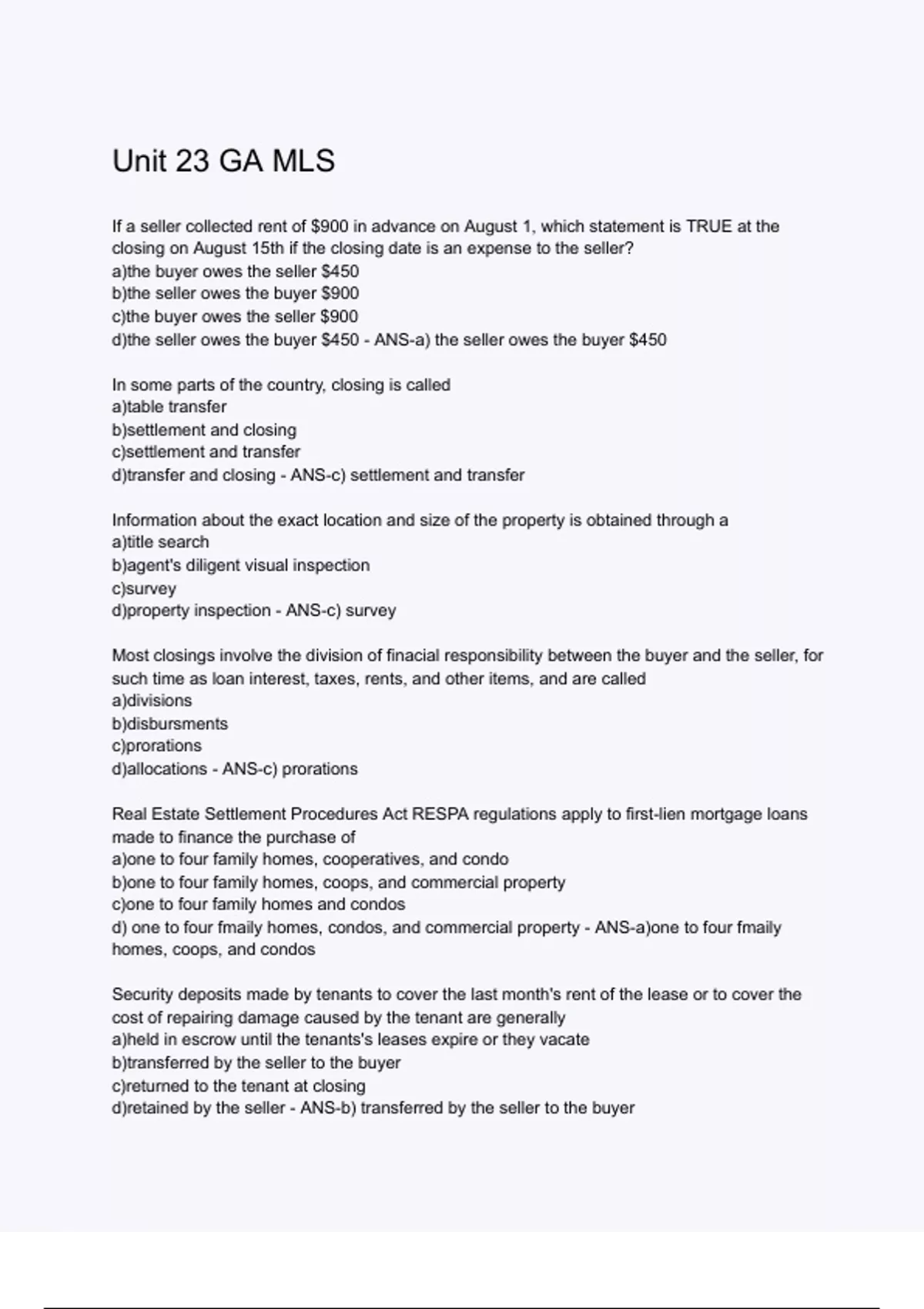 Unit 23 GA MLS. Questions and correct answers | already graded a+ | verified answers
