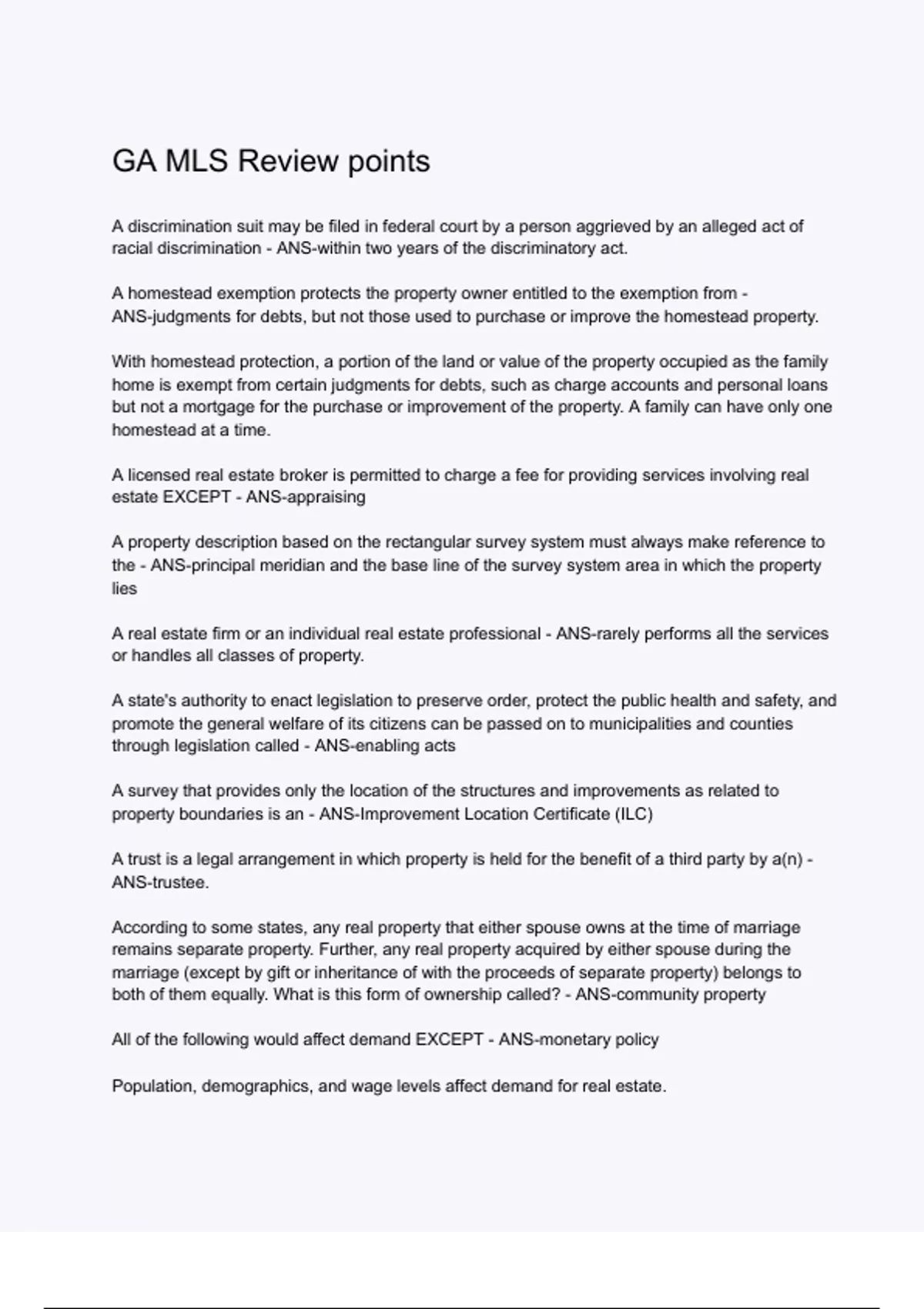 GA MLS Review points. Questions and correct answers | already graded a+ | verified answers