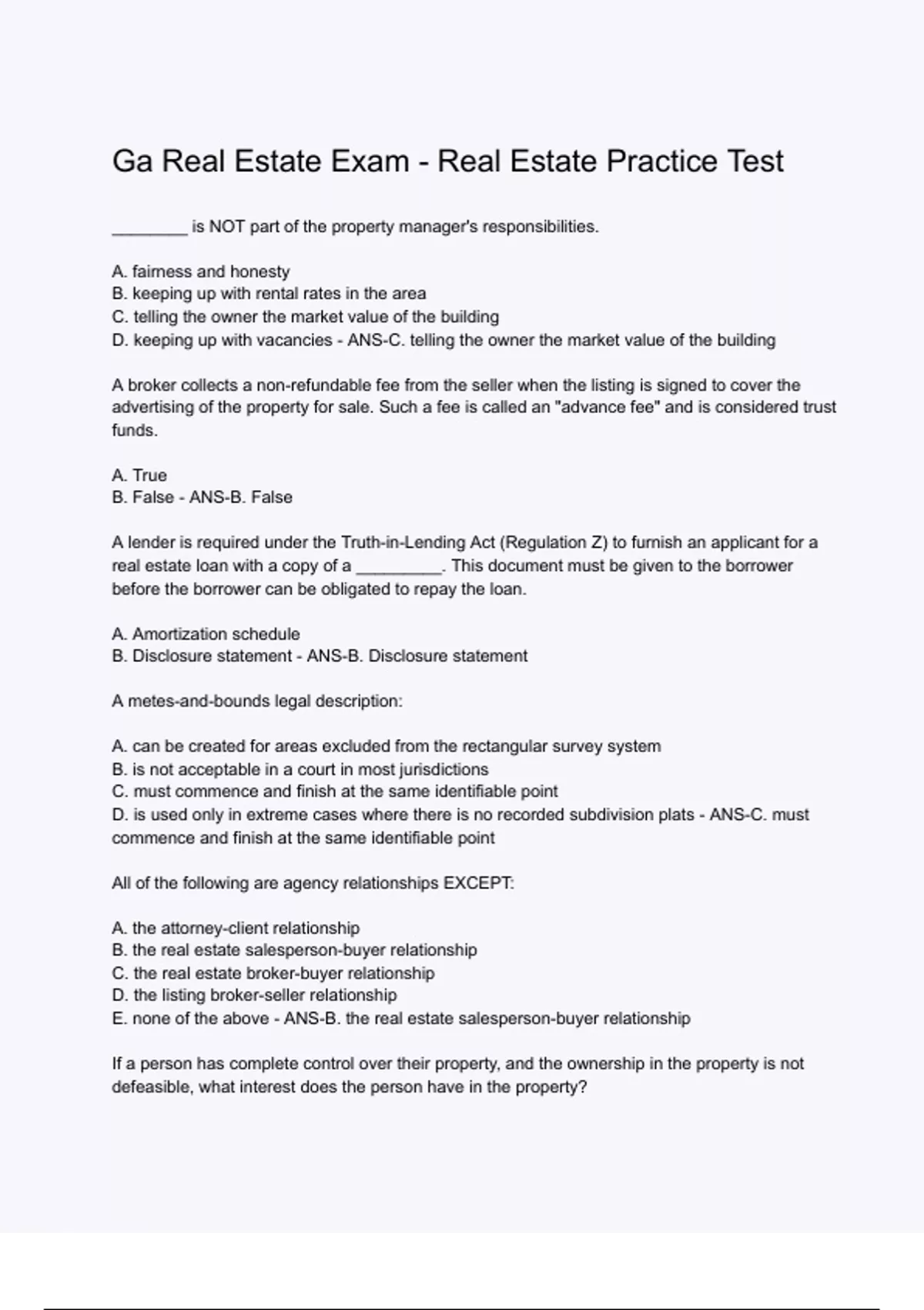 Ga Real Estate Exam - Real Estate Practice Test Questions and correct answers | already graded a+ | verified answers