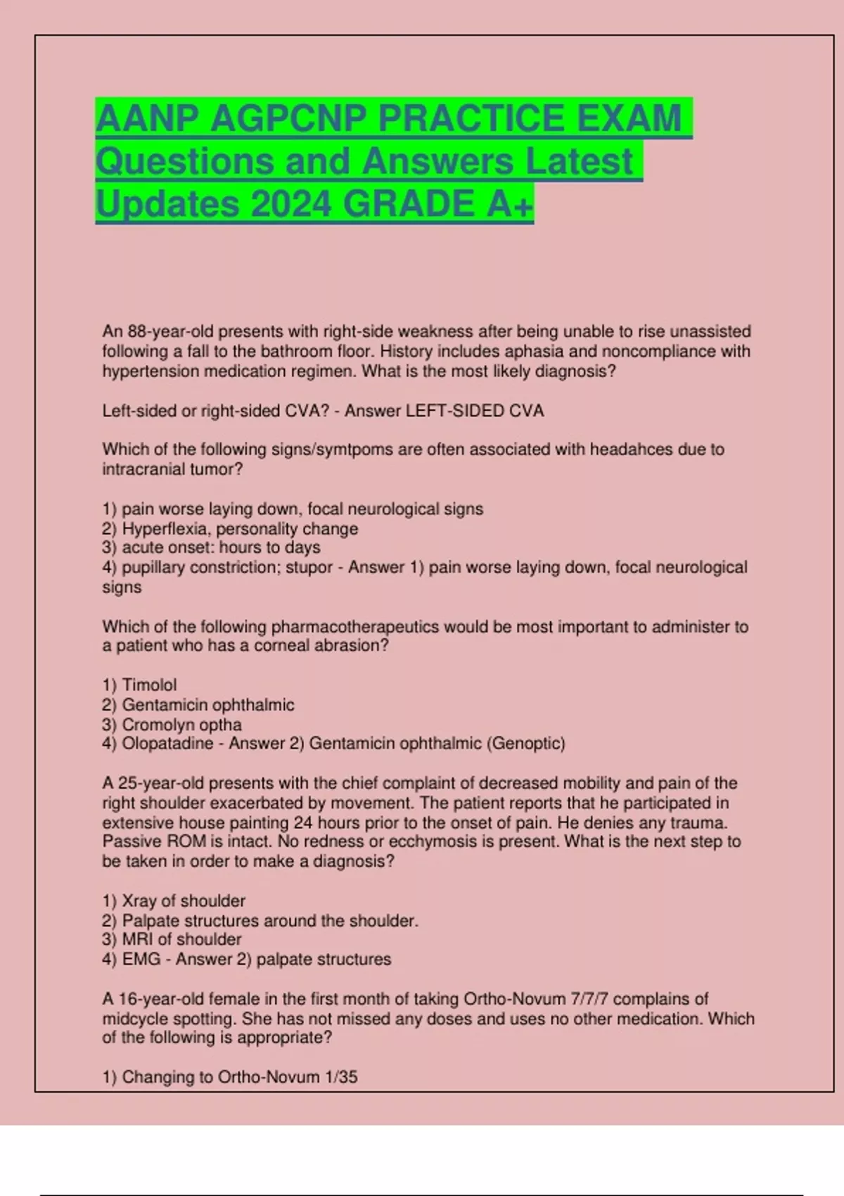 AANP AGPCNP PRACTICE EXAM Questions and Answers Latest Updates 2024 GRADE A+
