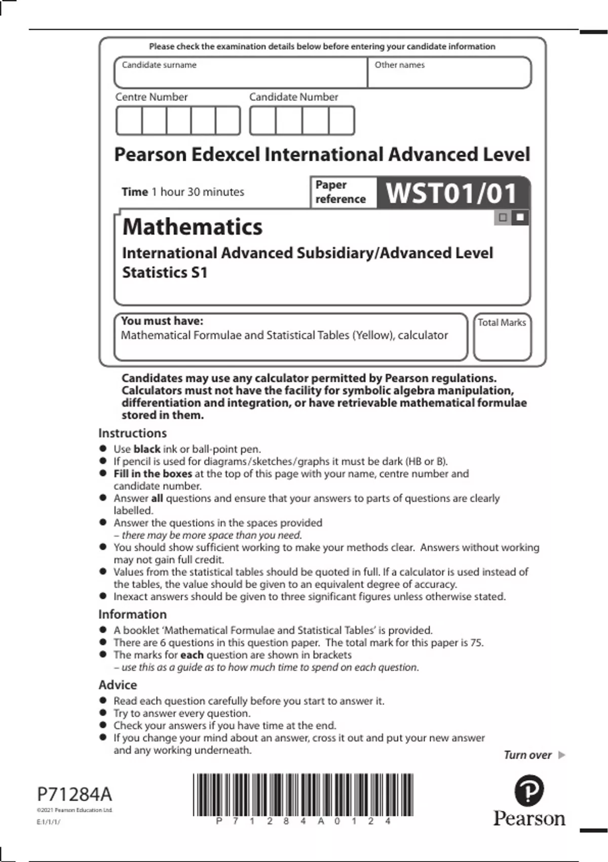 •• A booklet ‘Mathematical Formulae and Statistical Tables’ is provided.