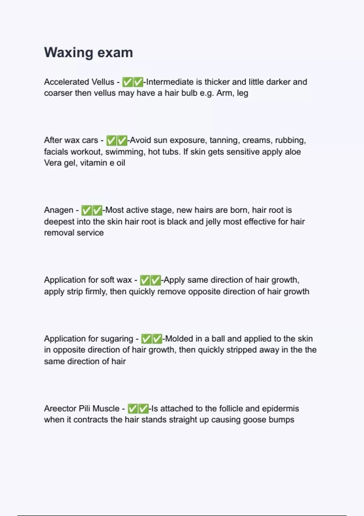 waxing exam questions and answers graded a com