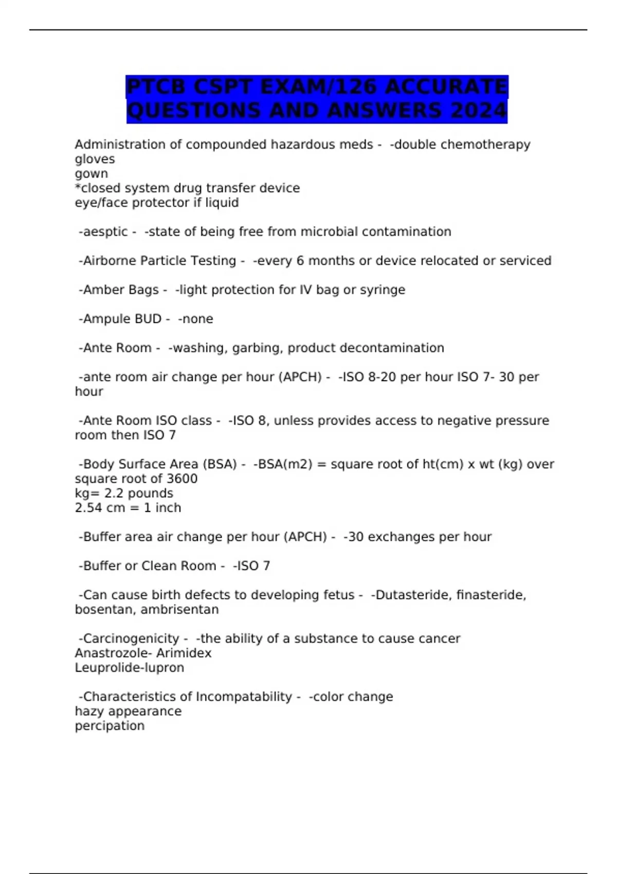 PTCB CSPT EXAM/126 ACCURATE QUESTIONS AND ANSWERS 2024