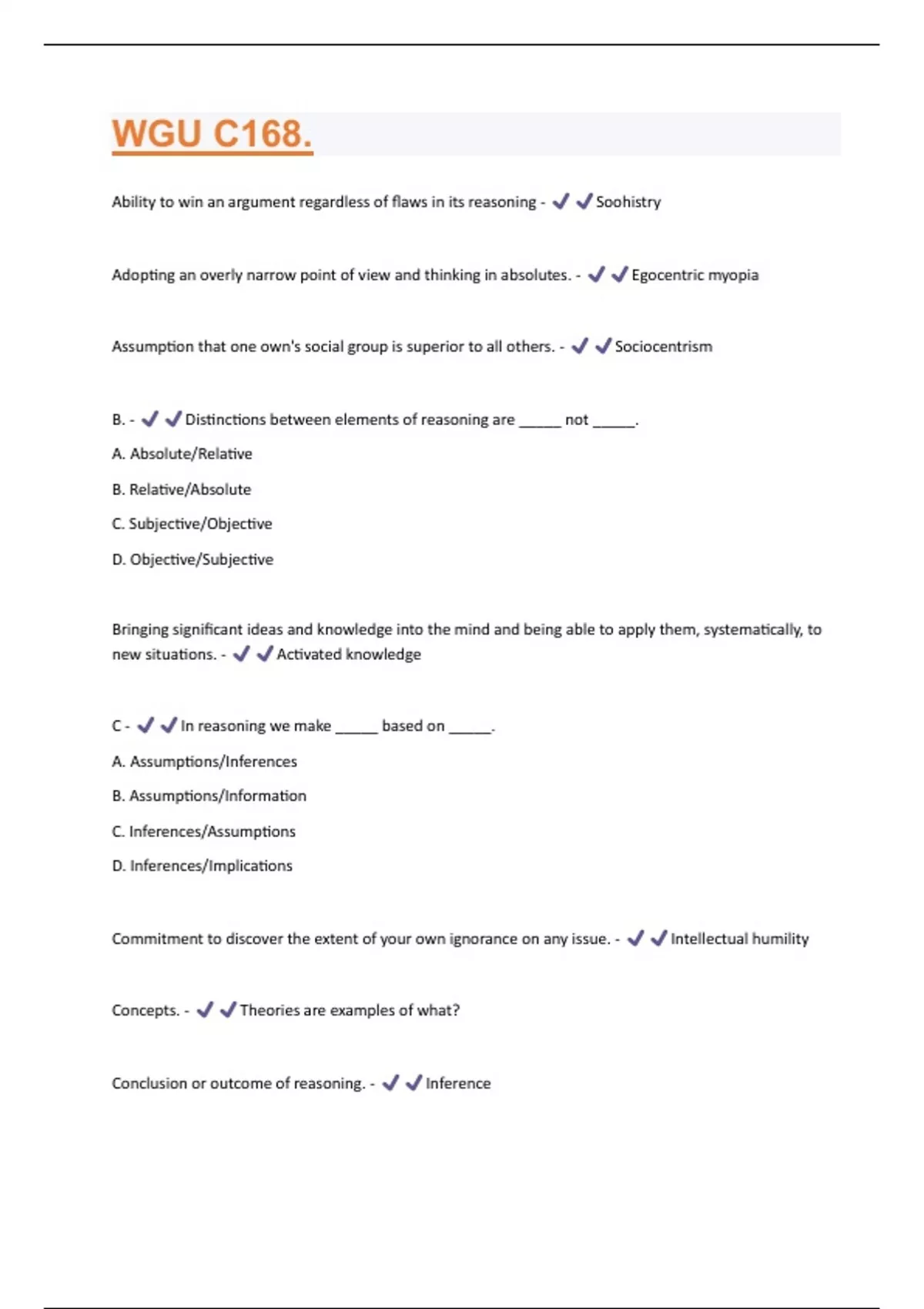 WGU C168 Question with 100 % correct answers | Verified | updated