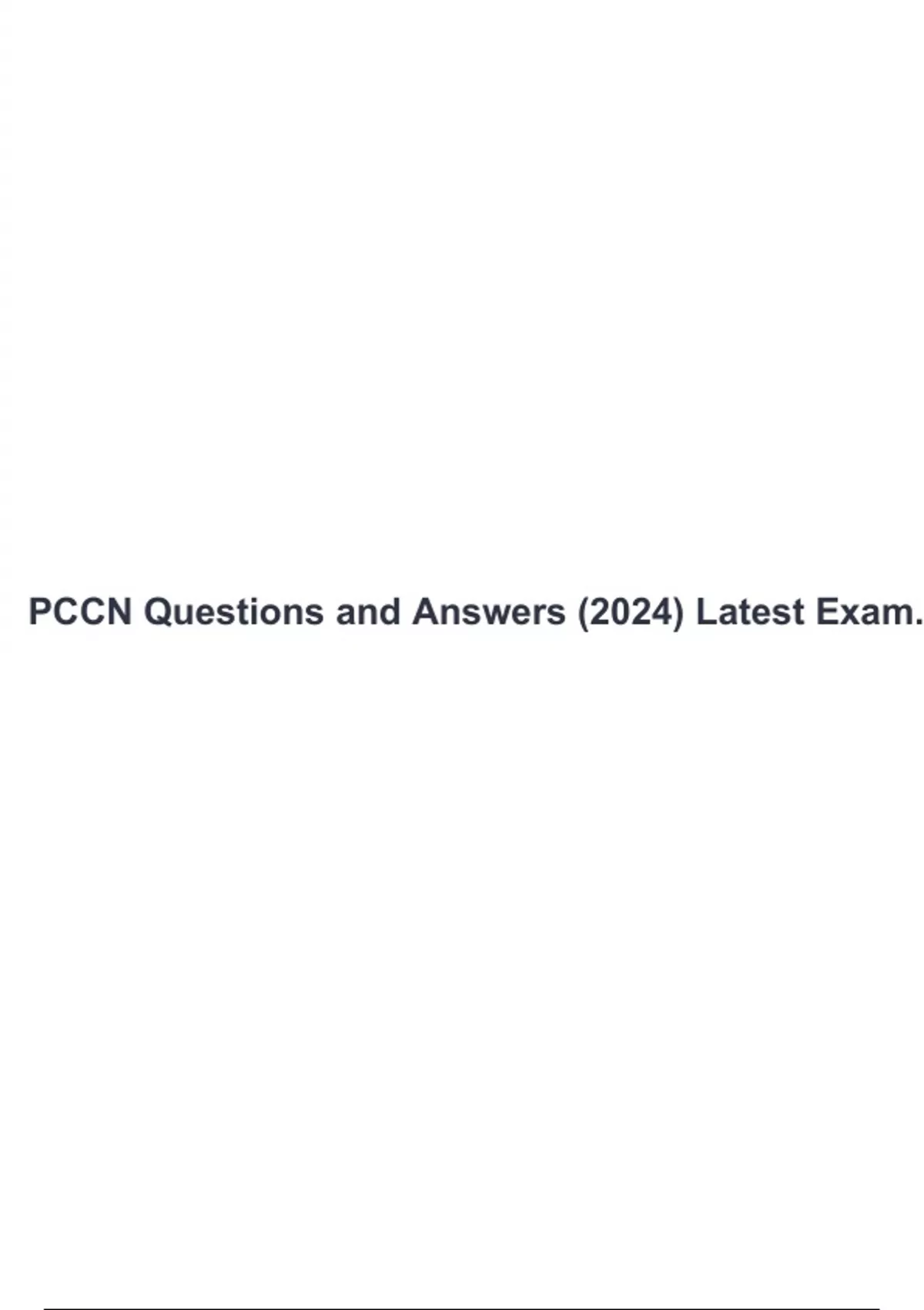 PCCN Questions and Answers (2024) Latest Exam. Two days following a near-drowning accident, a pt is dyspneic, using accessory muscles, expectorating large amounts of secretions and reporting feeling of impending death. Changes to the assessment data include RR- 24 TO 36 CXR clear to bilateral diffuse infiltrates ABG 40% face mask or 100% non-rebreather mask pO2 120 mm Hg to 56 mm Hg pCO2 33 mmHg to 56 mmHg pH 7.42 to 7.35 HCO3 24 meq/L to 27 mEq/L Which of the ff do these changes most likely represent A. aspiration pneumonia B. pulmonary embolism C. interstitial pneumonitis D. ARDS correct answerD. The onset of symptoms occured within 48 hours of the incident. THe bilateral diffuse infiltrates and ABG results indicating hypoxemia and CO2 retention are all consistent with ARDS. Aspiration pneumonia should include hypoxxemia, respiratory alkalosis. The CXR results would reveal an area of opacity with aspiration pneumonia rather than diffuse infiltrates. Interstitial lung disease invlolves an inflammation of supportive tissue between the air sacs rather than inflammation in the air sacs themselves. Symptoms would be SOB and a dry cough. A pt reports chest pain that is sharp, constant, worse when lying down and alleviated with sitting up and leaning forward. The most likely cause of these findings is A. ACS B. pericarditis C. PE D. AAA correct answerB Pericarditis is inflammation of the pericardial sac. The damaged epicardium becomes rough and inflamed and irritates the pericardium lying adjacent to it, precipitating pericarditis. Pain is the most common symptom of pericarditis. THe pain is sharp, constant and is alleviated when sitting up and leaning forward. A pt tells a nurse, "I don't know how I'm going to pay for this hospitalization." The nurse should A. arrange a meeting with hospital social services staff B. Notify the business office so a payment plan can be designed C. redirect the pt toward meeting psychologic needs D. give the pt applications for public assistance medical coverage correct answerA. Collaboration with a social worker is indicated in this case the social worker can assist the pt in identifying ways to address the financial implications of this hospitalization and help identify methods of payments. A cardiac pt with with DNR status is being managed medically. The nurse notes a new cough, thick yellow sputum and a temperature of 101.4 (38.4) Coarse crackles are present in the right upper field. The nurse should most immediately anticipate A. blood and sputum cultures followed by a broad spectrum abx B. mucolytics and judicious IV fluid administration C. an antyipyretic and conservative management D. NPO status and encouragement of frequent activity correct answerA. This pt symptoms are consistent with pneumonia. Management should include abx therapy, oxygen therapy for hypoxemia, mechanical ventilation if acute respiratory failure develops, fluid management for hydration, nutritional support, and treatment of associated medical problems and complications. Which of the ff findings is most indicative of a ruptured aortic aneurysm A. Back pain B. bounding peripheral pulses C. intermittent claudication D. warm, flushed skin correct answerA. An aneurysm is the localized dilation of an artery. Should an aneurysm rupture, blood will build up under pressure in the tissues surrounding the aorta, which can result in acute pain and tenderness in theses areas. This is particularly the case if the aneurysm leaks from the back of the aorta. Ruptured AAA presents with a classic triad of pain in the flank or back, hypotension and a pulsatile abdominal mass; however, only about half of the full triad. The pt will complain of the pain and may feel cold, sweaty and faint on standing. The pt may also report abdominal pain. A small percentage may have vomiting According to recommendations based on research findings, pain assessment should occur A. based on changes in vital signs B. only when the pt movements indicate the pt is seeking attention C. routinely, regardless of physical findings D. only when the presence of pain can be validated correct answerC. Pain is considered the fifth vital sign and must be assessed regularly. Presence of physical findings may be part of the comprehensive assessment of pain. However, physical findings may not be present in all patients with pain A pt with a tracheostomy requires frequent suctioning for thick sputum, A nurse finds a colleague instilling saline in the endotracheal tube prior to suctioning. The most appropriate response by the nurse would be to A. report the colleague to the charge nurse or manager B. noted the practice on the pt chart to ensure consistency of suctioning techniques C. ask the attending physician to review the suctioning policy. D. collaborate with the colleague to review the evidence about this practice. correct answerD. In addition to an unappreciable increase in sputum recovery, use of NS adversely affects arterial and global tissue oxygenation and dislodges bacterial colonies, thus contributing to lower airway contamination. Other harmful pt outcomes have been reported in the nursing literature, including delays in return to baseline vital signs, Spo2 and intracranial pressure. Because no solid scientifically based benefits for routine use of normal saline have been shown, it is highly recommended that this potentially harmful practice be abandoned. Instead, treatment considerations should center on ways to prevent the development of thick tenacious secretions. A review of these data should take place with the colleague to help mitigate continuation of this dangerous practice Upon admission to the PCU, you screen a pt to determine whether to administer an influenza vaccine. Which of the following is a contraindication to the vaccine? A. Guillian-Barre syndrome B. chronic renal failure C. COPD D. cirrhosis correct answerA. Persons who developed Guillain-Barre syndrome after receiving an influenza vaccine should not receive