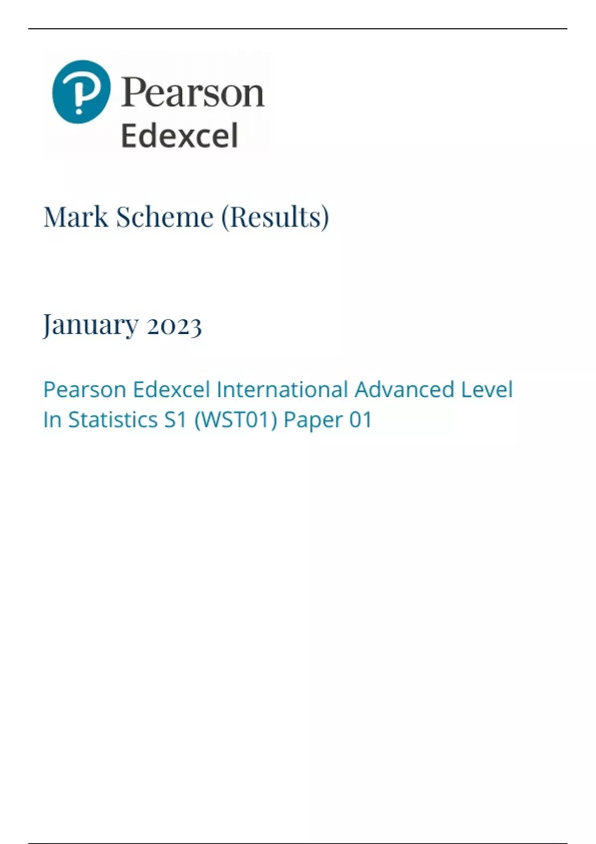 Mark Scheme (Results) January 2023 Pearson Edexcel International Advanced Level In Statistics S1 (WST01) Paper 01