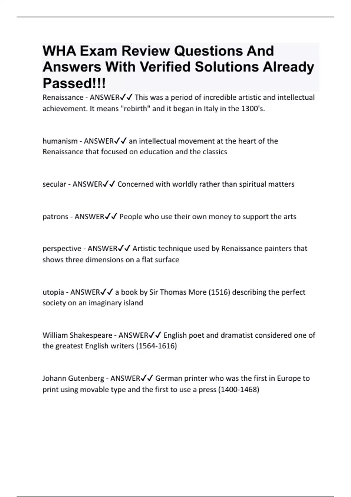 WHA Exam Review Questions And Answers With Verified Solutions Already Passed!!!