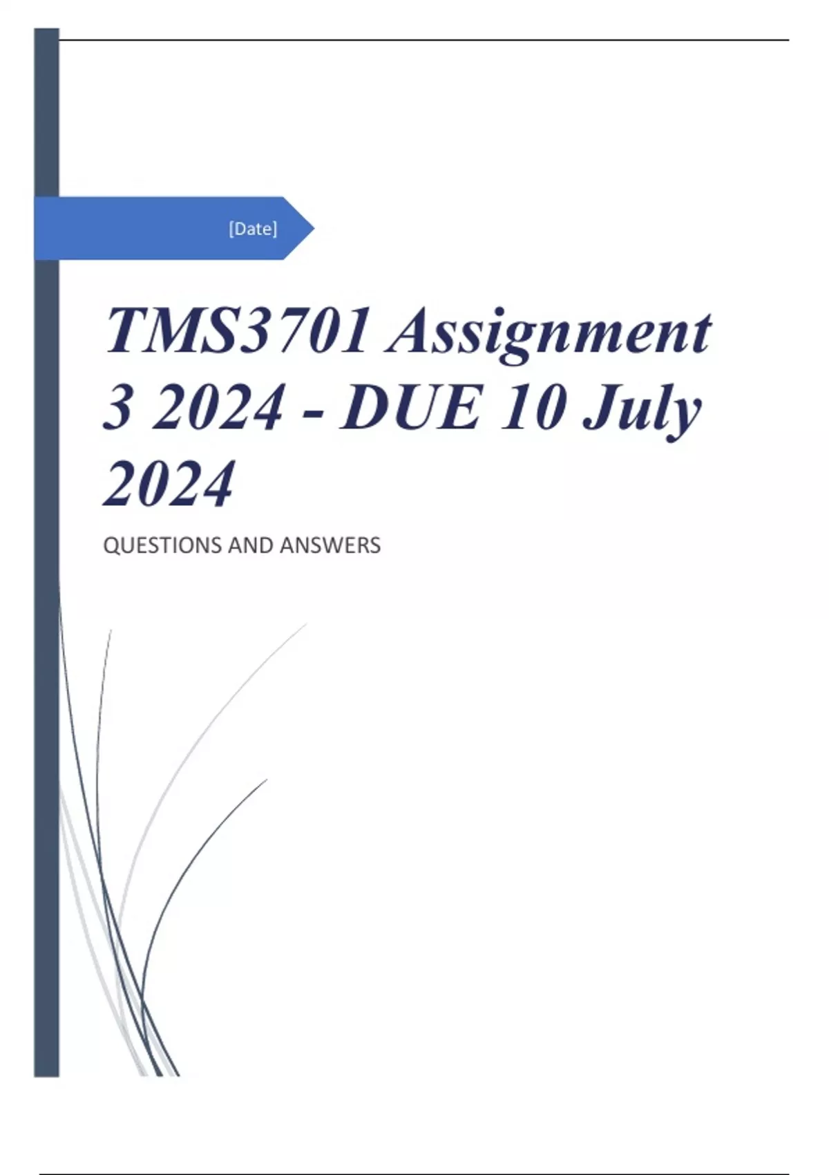 TMS3701 Assignment 3 2024 - DUE 10 July 2024 QUESTIONS AND ANSWERS