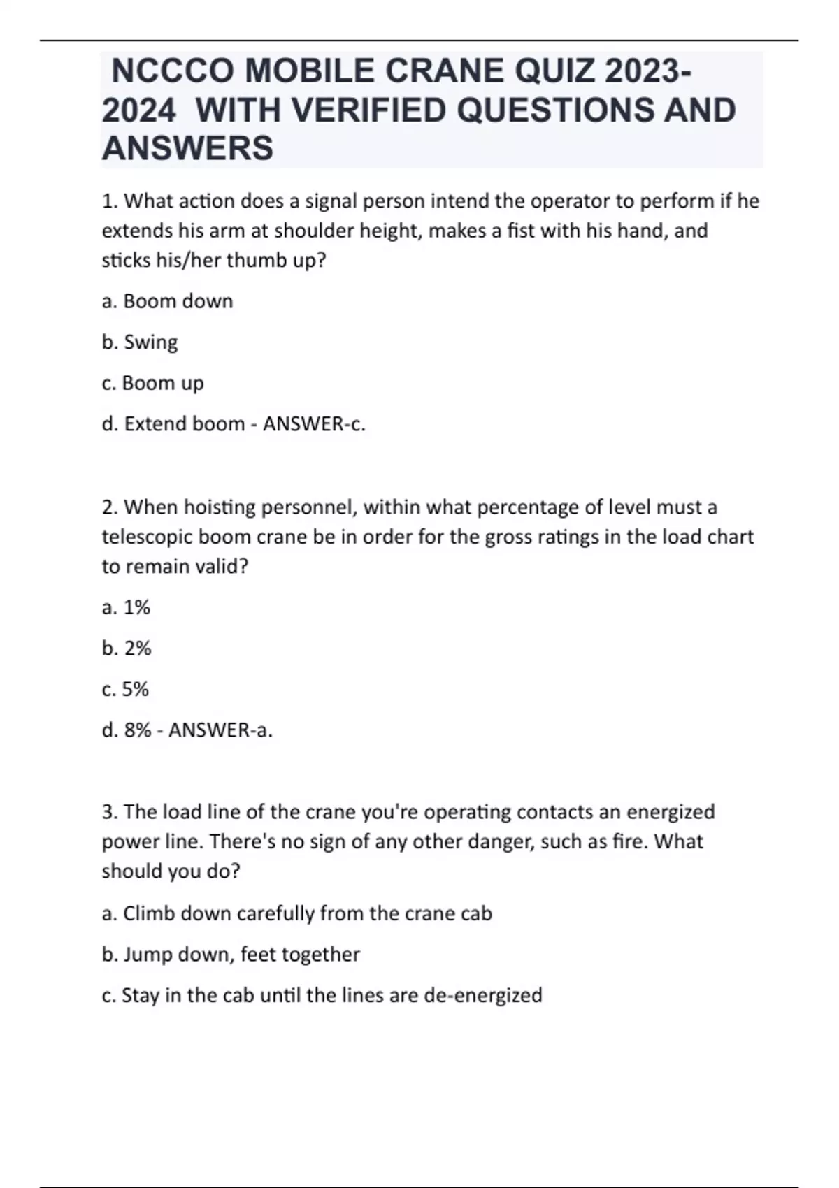 NCCCO MOBILE CRANE QUIZ WITH VERIFIED QUESTIONS AND ANSWERS