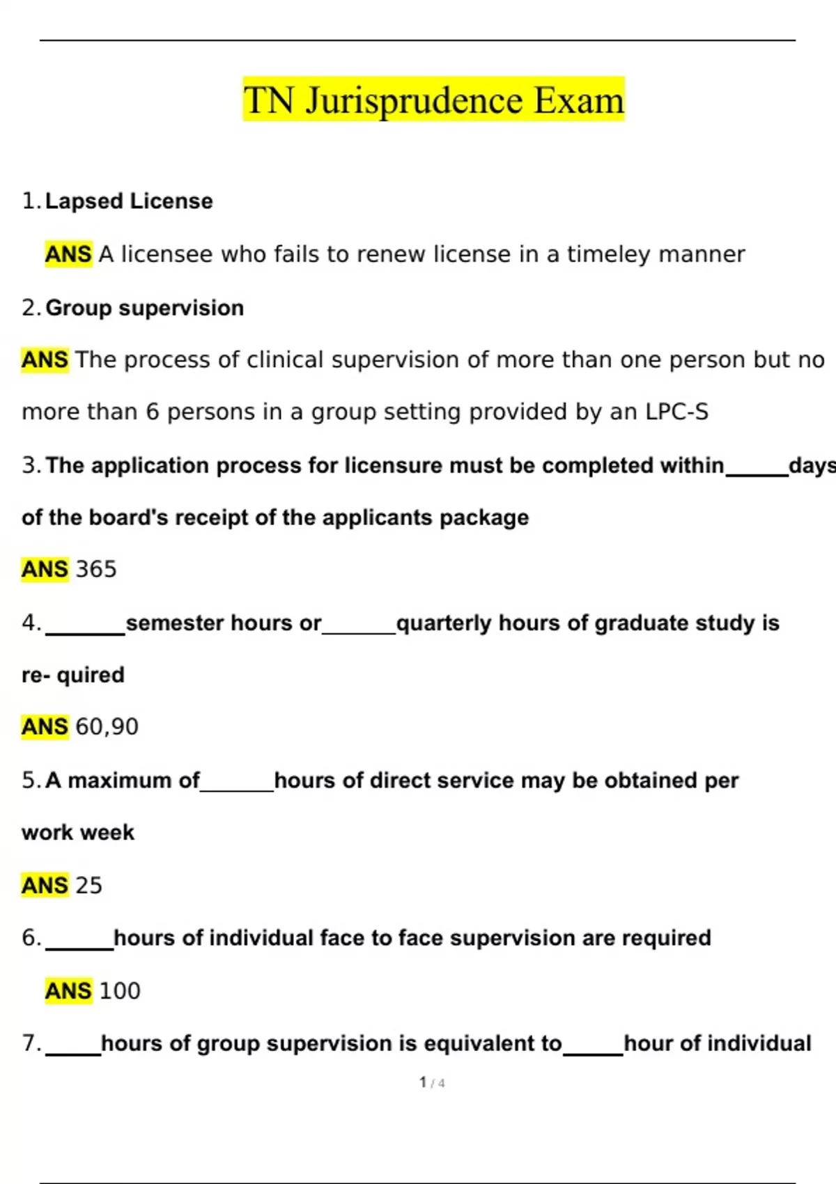 TN Jurisprudence Exam Questions and Answers (2024 / 2025) (Verified Answers)