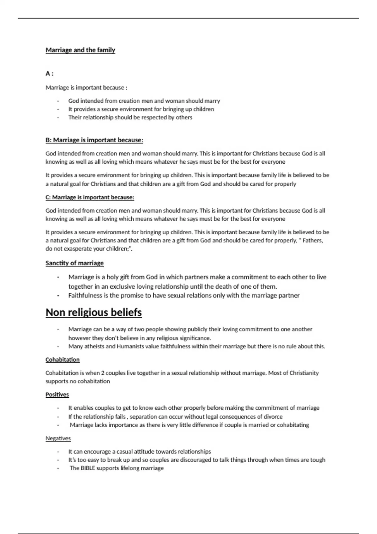 Summary GCSE Grade 9 Notes Marriage and The Family