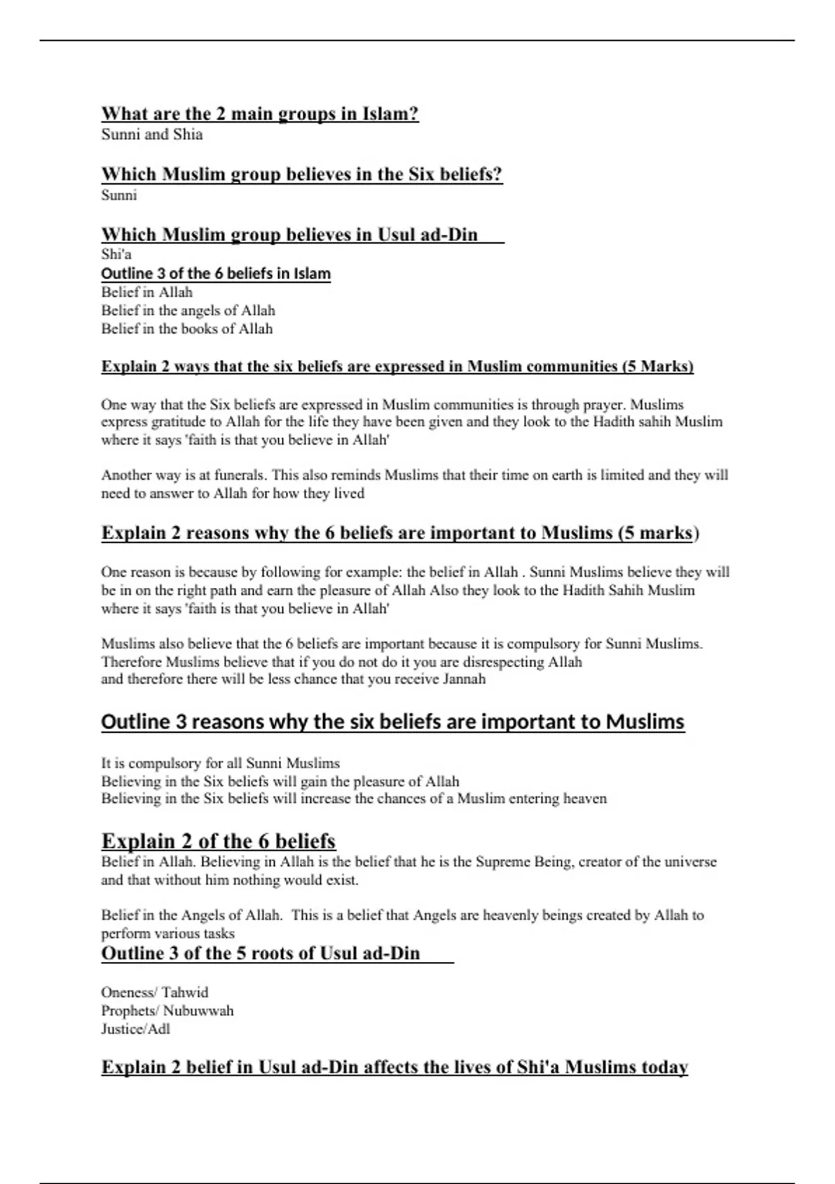 Explain 2 reasons why the 6 beliefs are important to Muslims (5 marks)
